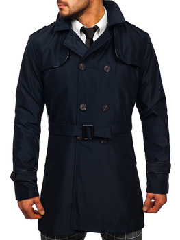 Ναυτικο μπλε με διπλη σειρα κουμπιων παλτο ανδρικο με ορθιος γιακας και ζωνη Bolf 0001