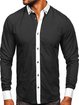 Πουκαμισο ανδρικο κομψο με μακρια μανικια μαυρο Bolf 2782