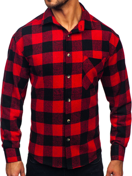 Κόκκινο ανδρικό φανελένιο πουκάμισο καρό με μακριά μανίκια Bolf 2025-1