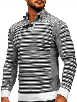 Γκρι ανδρικό πουλόβερ με όρθιο γιακά Μπολφ YY08