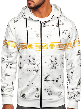 Λευκό με εκτύπωση ανδρικό φούτερ με κουκούλα Bolf HM631