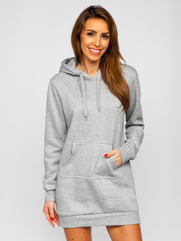 Γκρι μακρύ γυναικείο φούτερ με την κουκούλα Bolf YS10003-A