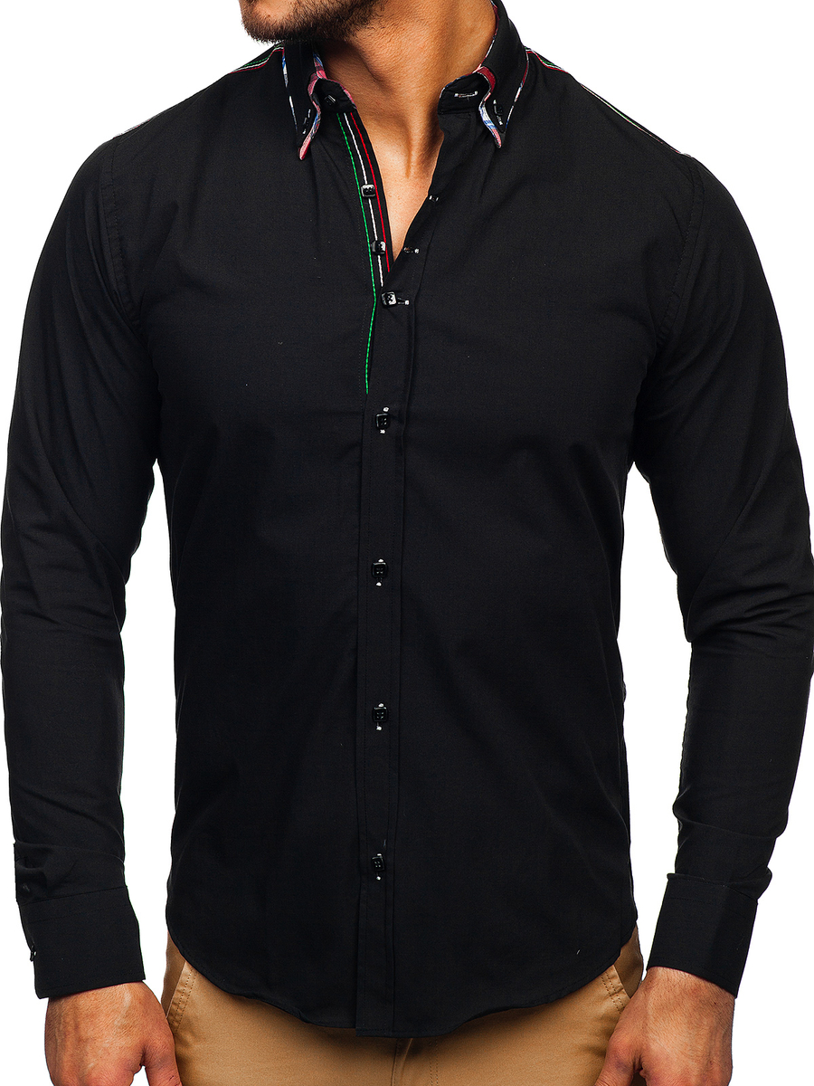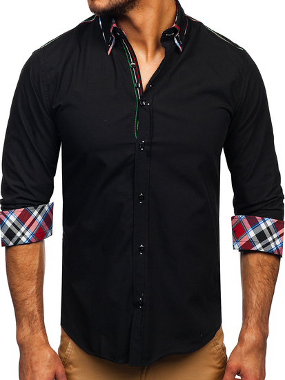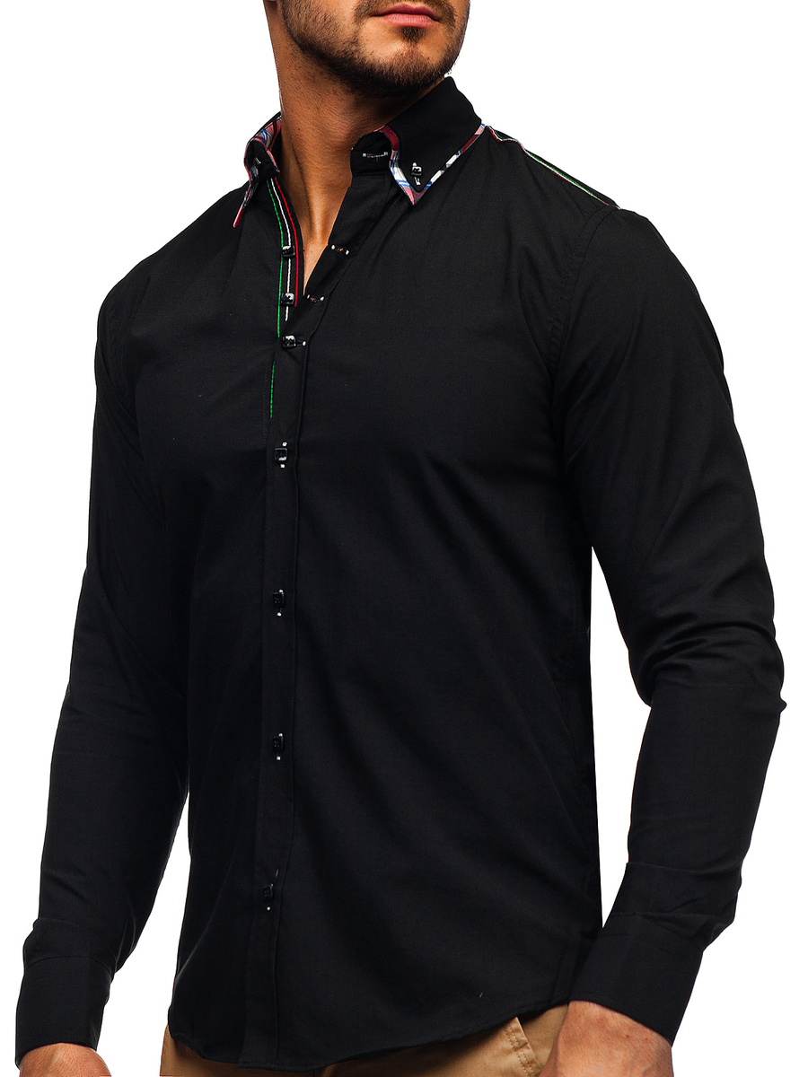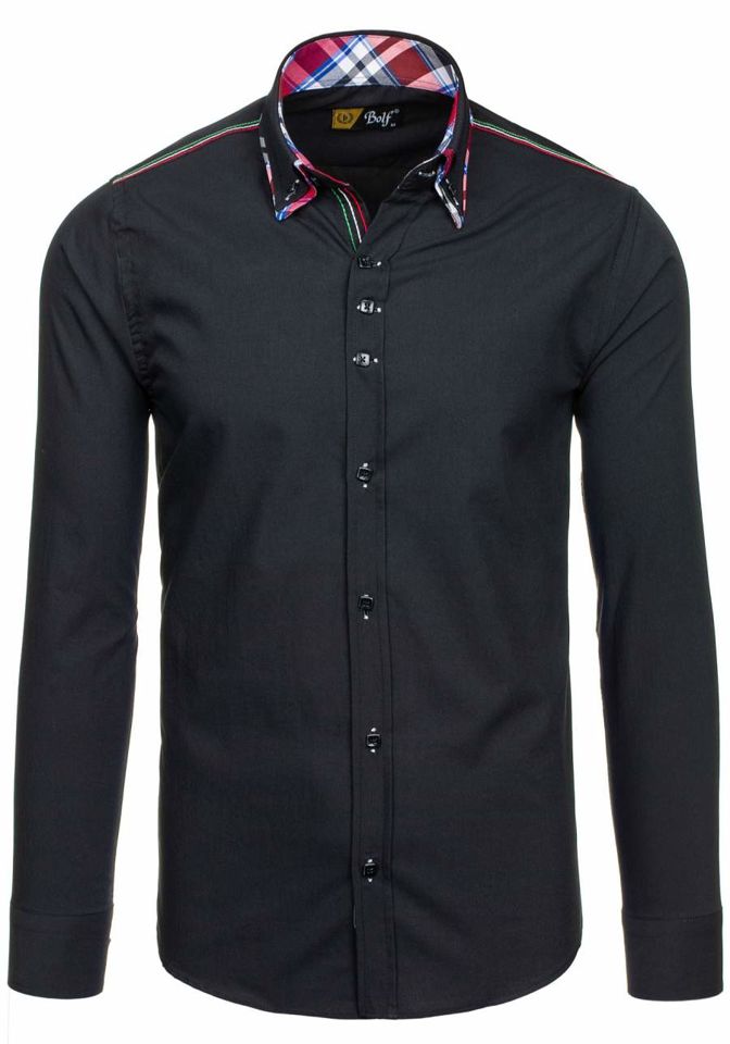 Πουκαμισο ανδρικο κομψο με μακρια μανικια μαυρο Bolf 2705