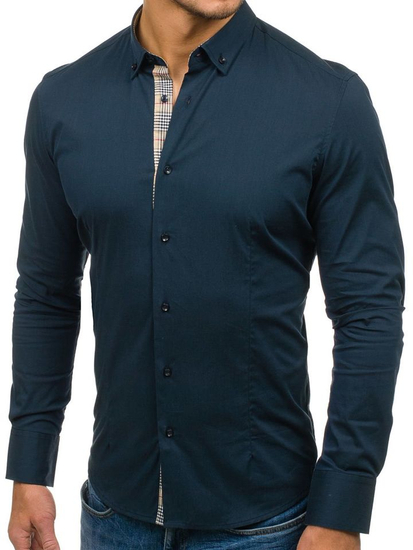 Αξιολογήσεις χρηστών για το Πουκαμισο ανδρικο κομψο με μακρια μανικια ναυτικο μπλε Bolf 7197