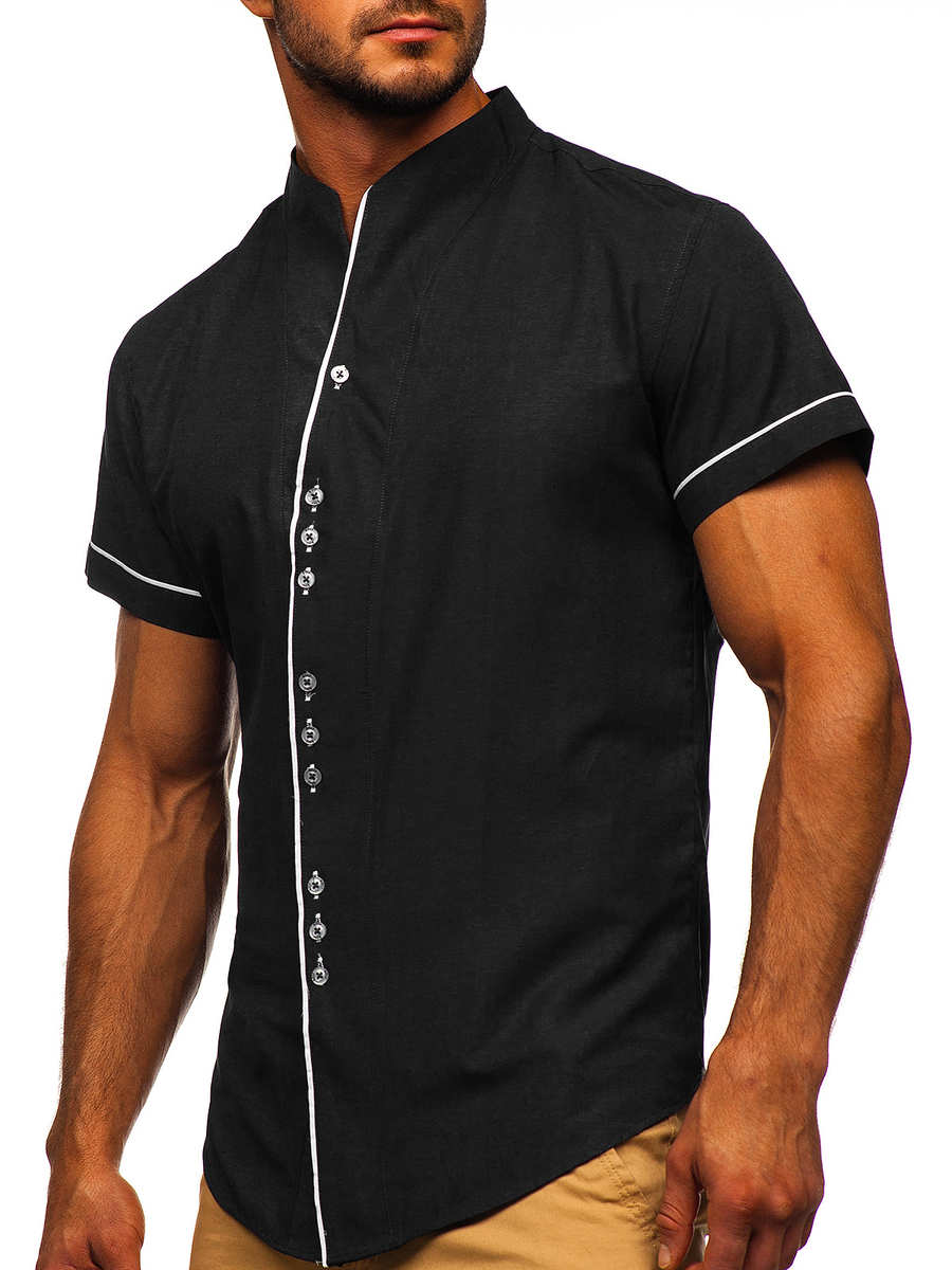 Πουκαμισο ανδρικο με κοντα μανικια μαυρο Bolf 5518