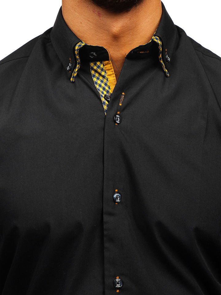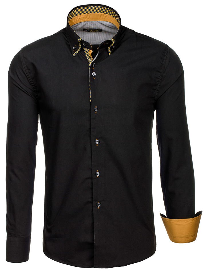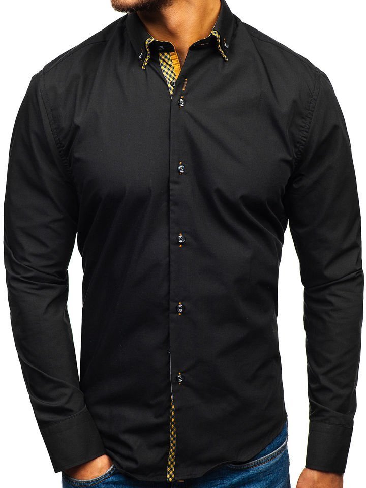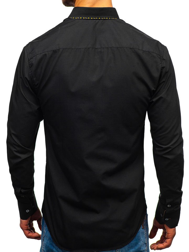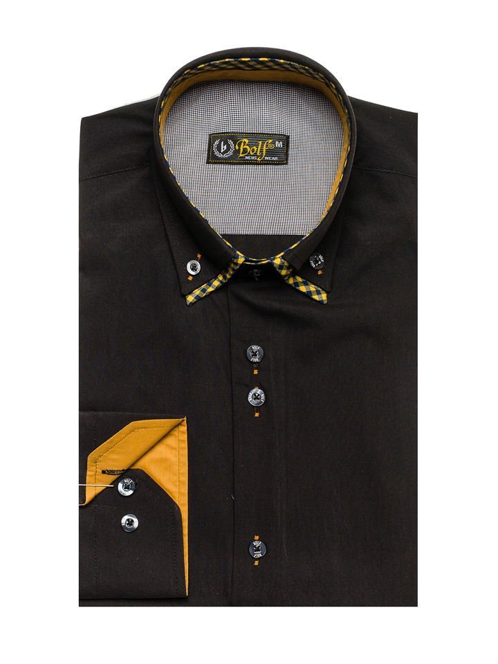 Πουκαμισο ανδρικο κομψο με μακρια μανικια μαυρο-καφε Bolf 4708