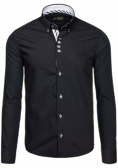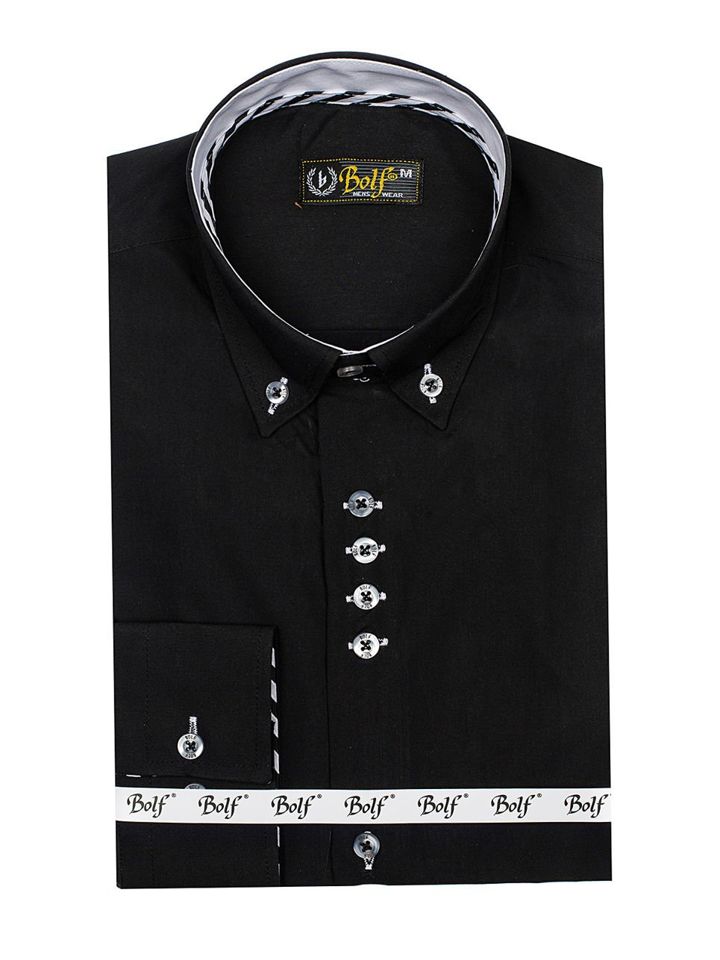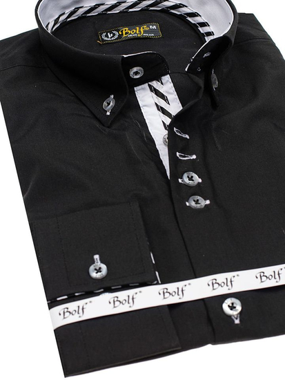 Πουκαμισο ανδρικο κομψο με μακρια μανικια μαυρο Bolf 5796