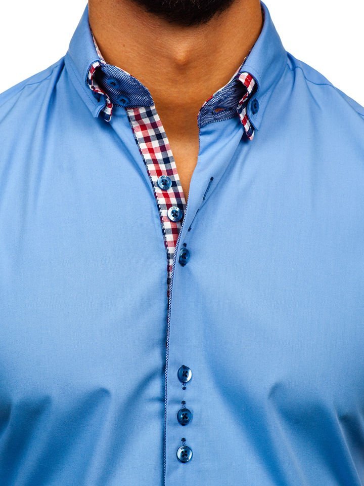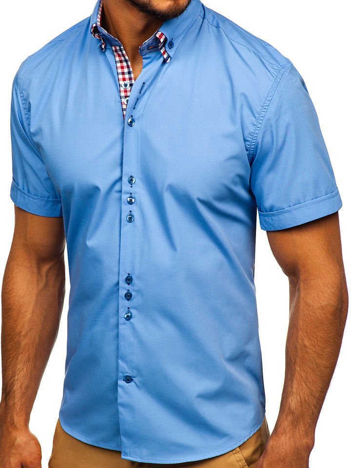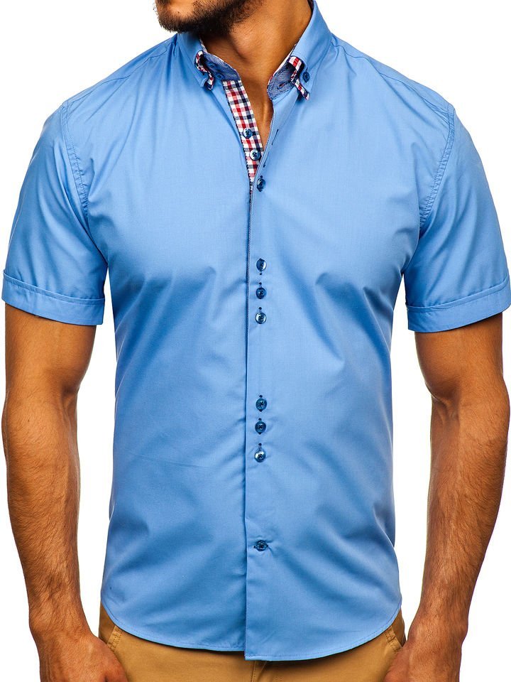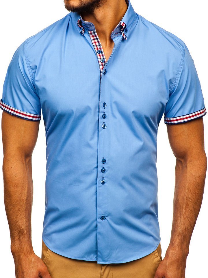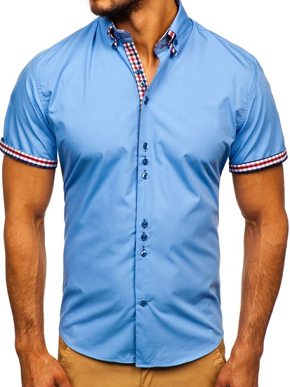 Ανδρικό κομψό πουκάμισο με κοντό μανίκι γαλάζιο Bolf 3507