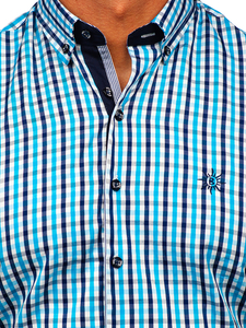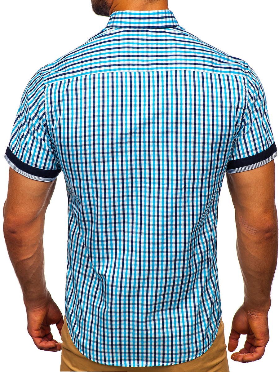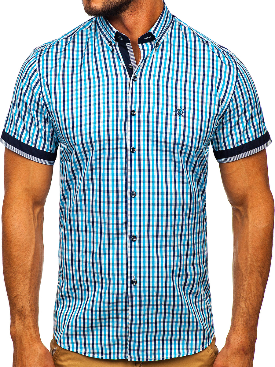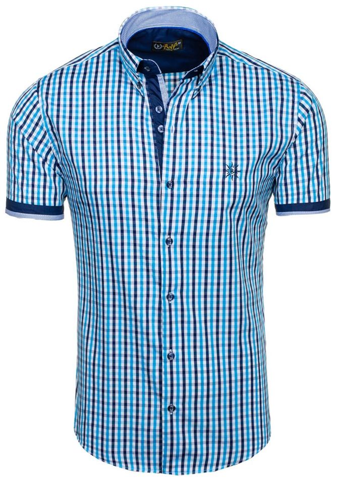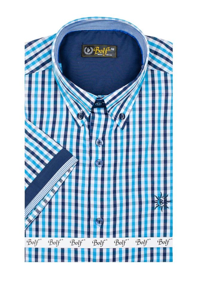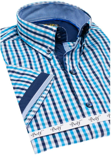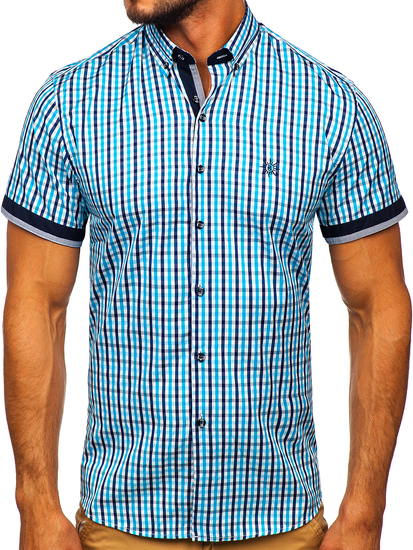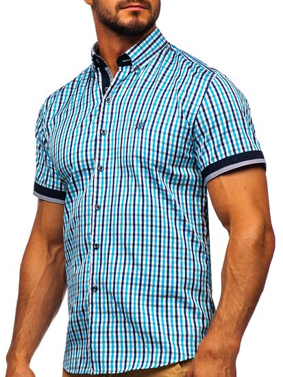 Πουκαμισο ανδρικο τετραγωνισμενομε κοντα μανικια τυρκουαζ Bolf 4510