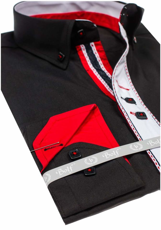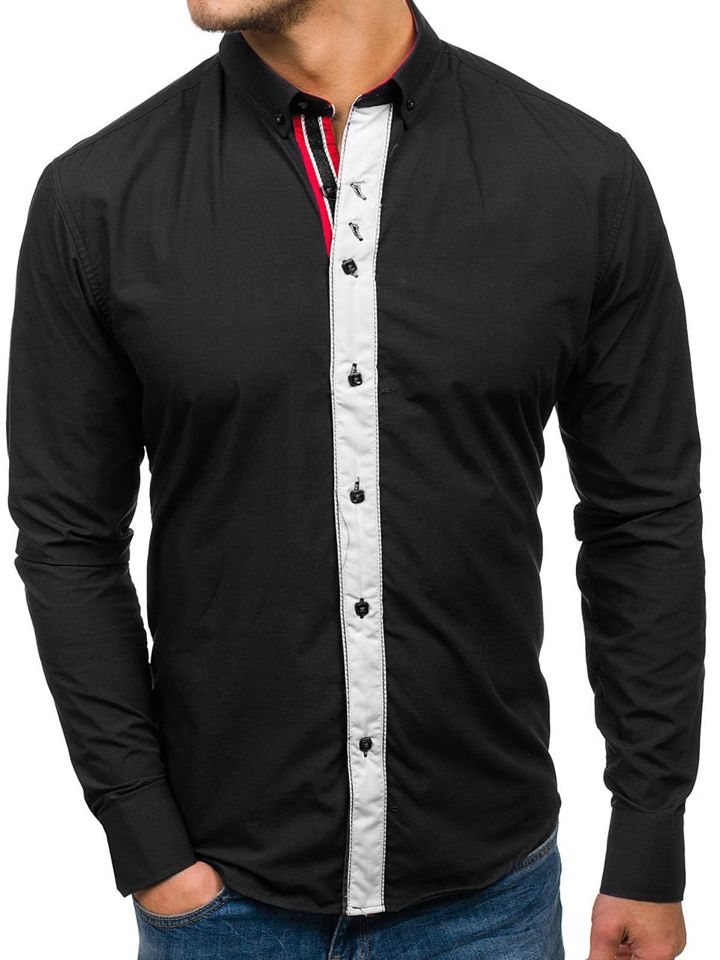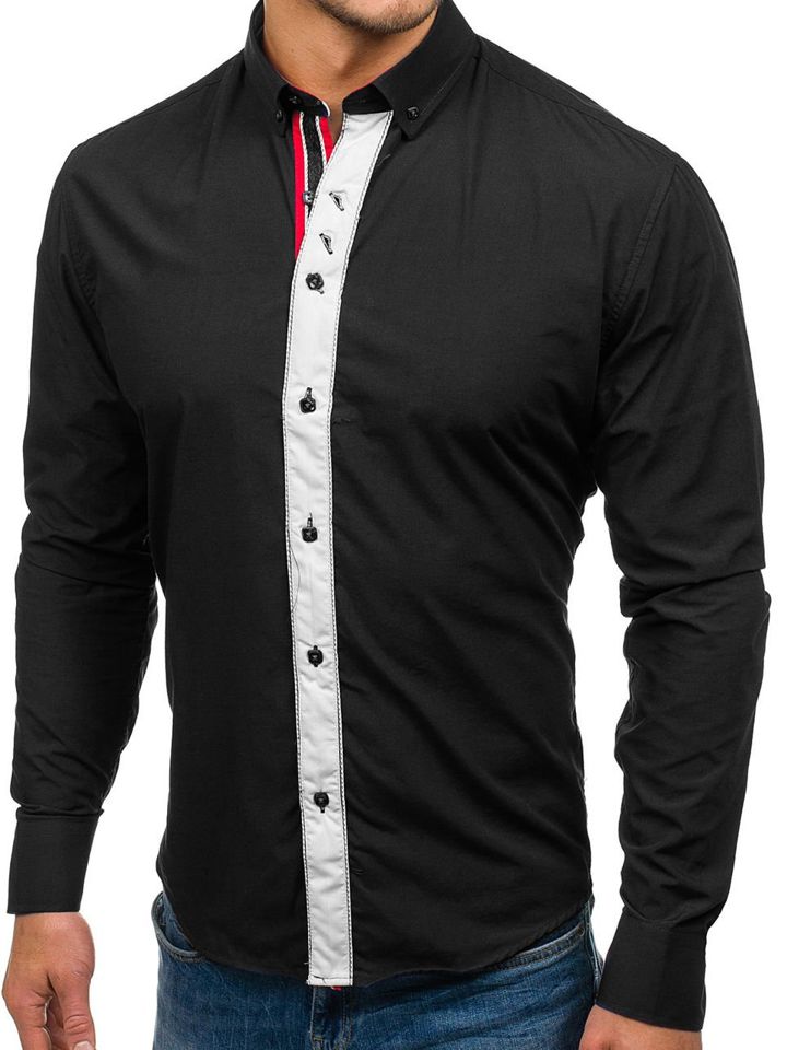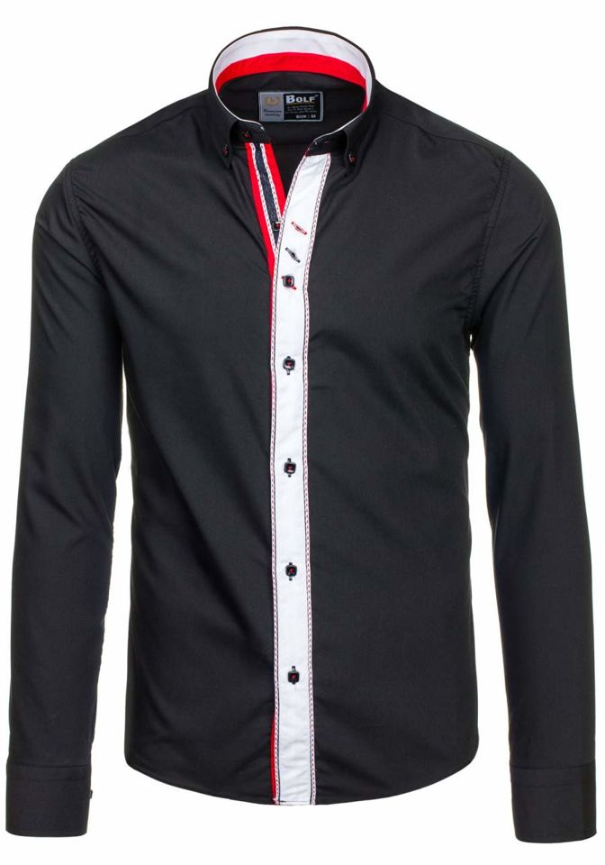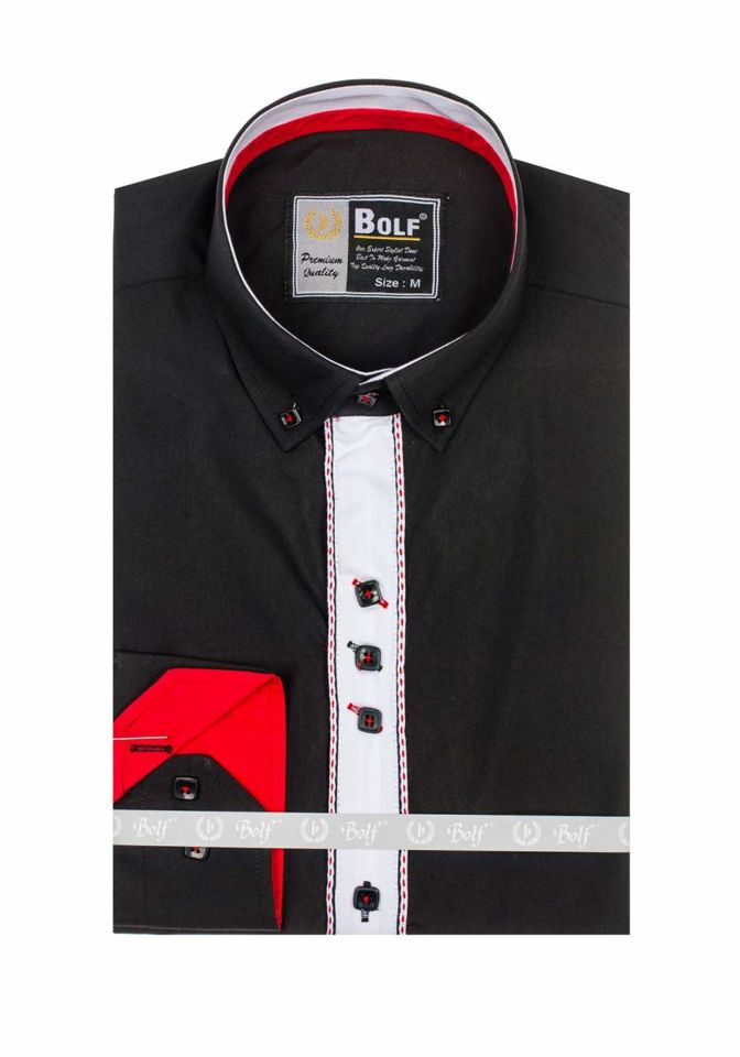 Πουκαμισο ανδρικο κομψο με μακρια μανικια μαυρο Bolf 5827