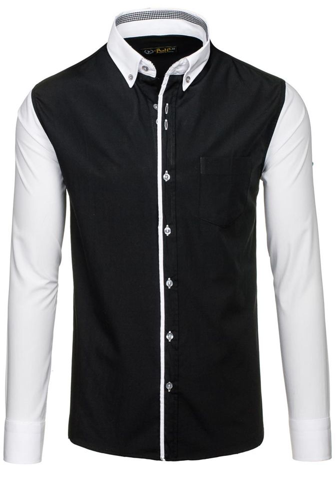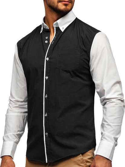 Πουκαμισο ανδρικο κομψο με μακρια μανικια μαυρο Bolf 6919