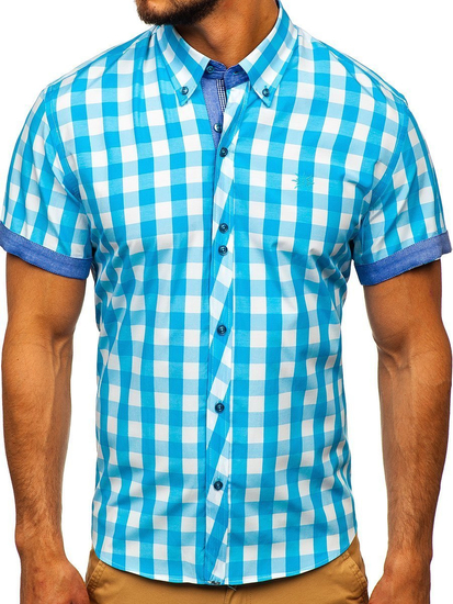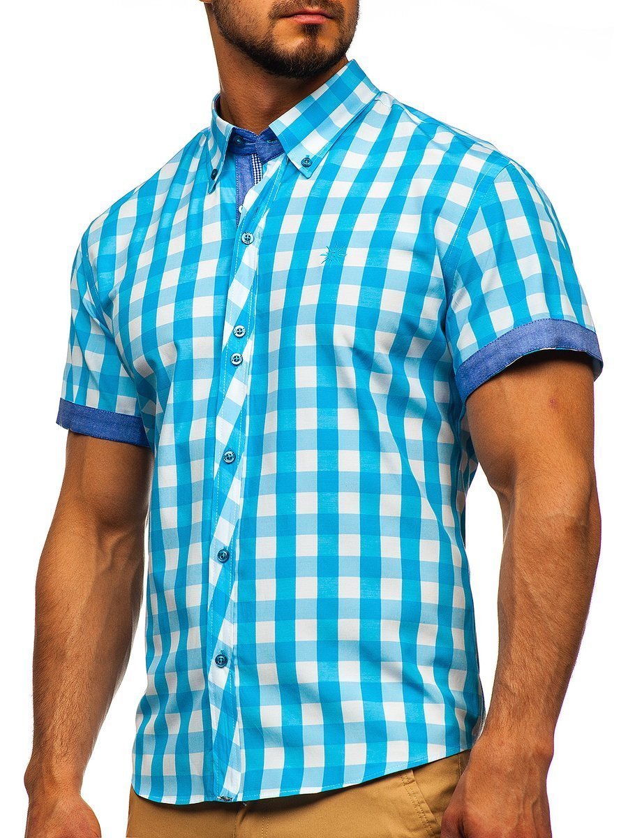 Αξιολογήσεις χρηστών για το Πουκαμισο ανδρικο τετραγωνισμενο με κοντα μανικια τυρκουαζ Bolf 6522