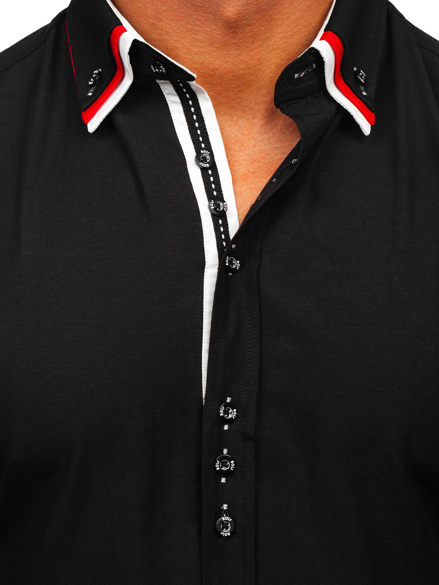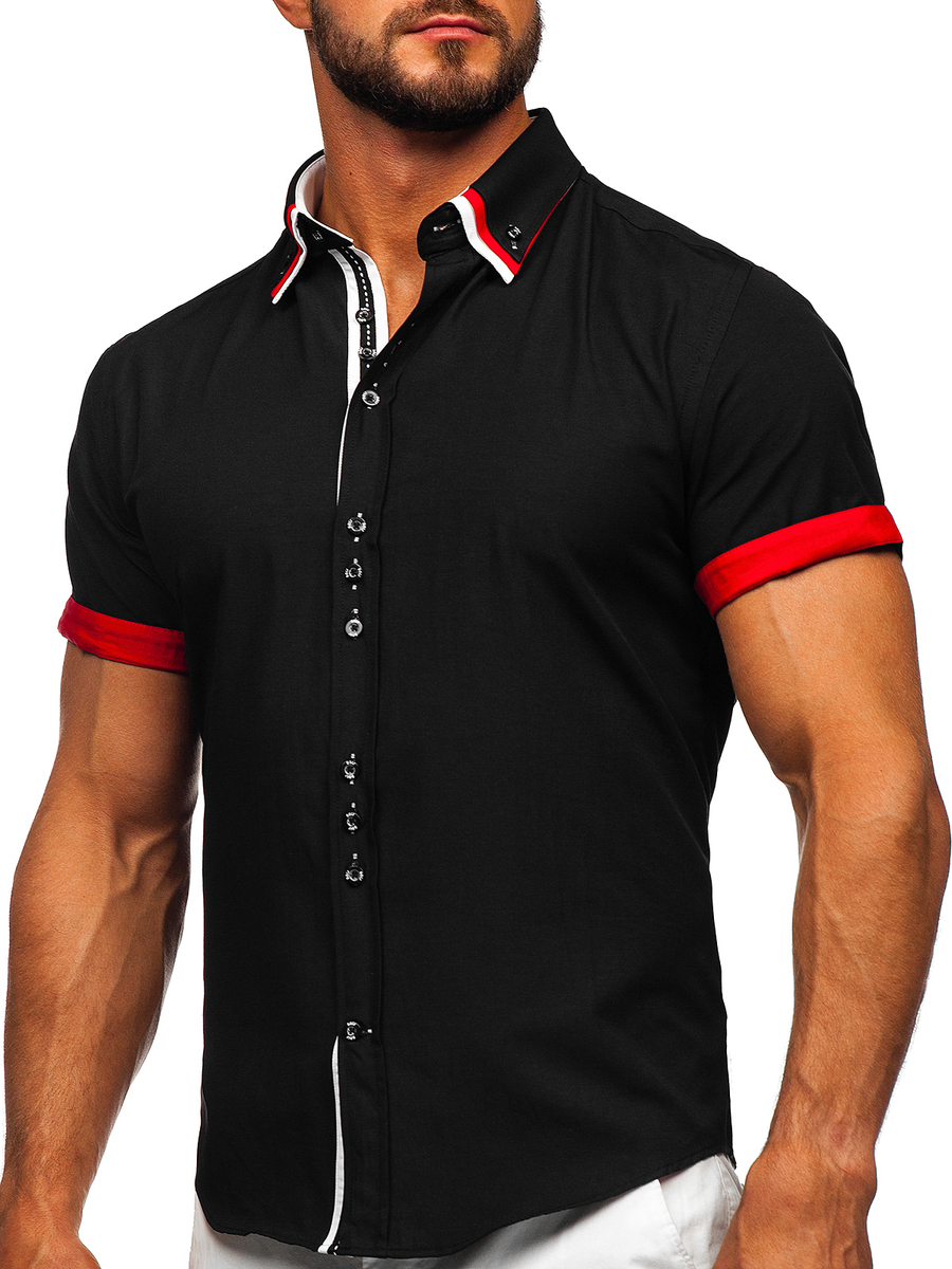 Πουκαμισο ανδρικο κομψο με κοντα μανικια μαυρο Bolf 2926