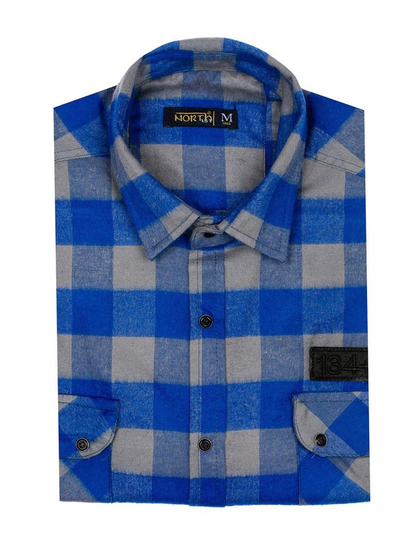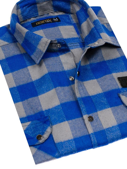 Αξιολογήσεις χρηστών για το Πουκαμισο ανδρικο φανελα με μακρια μανικια μπλε-γκρι Bolf 2503