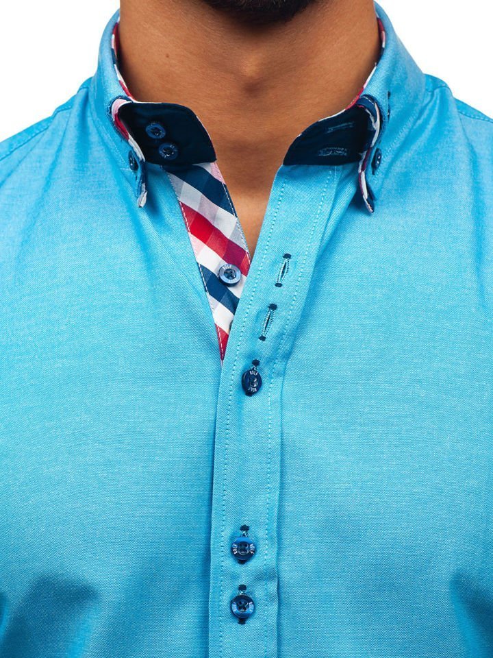 Αξιολογήσεις χρηστών για το Πουκαμισο ανδρικο κομψο με μακρια μανικια τυρκουαζ Bolf 2759