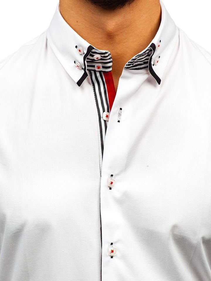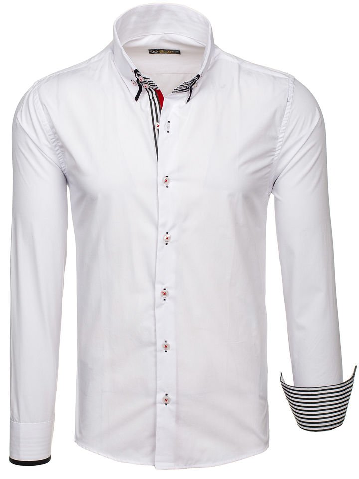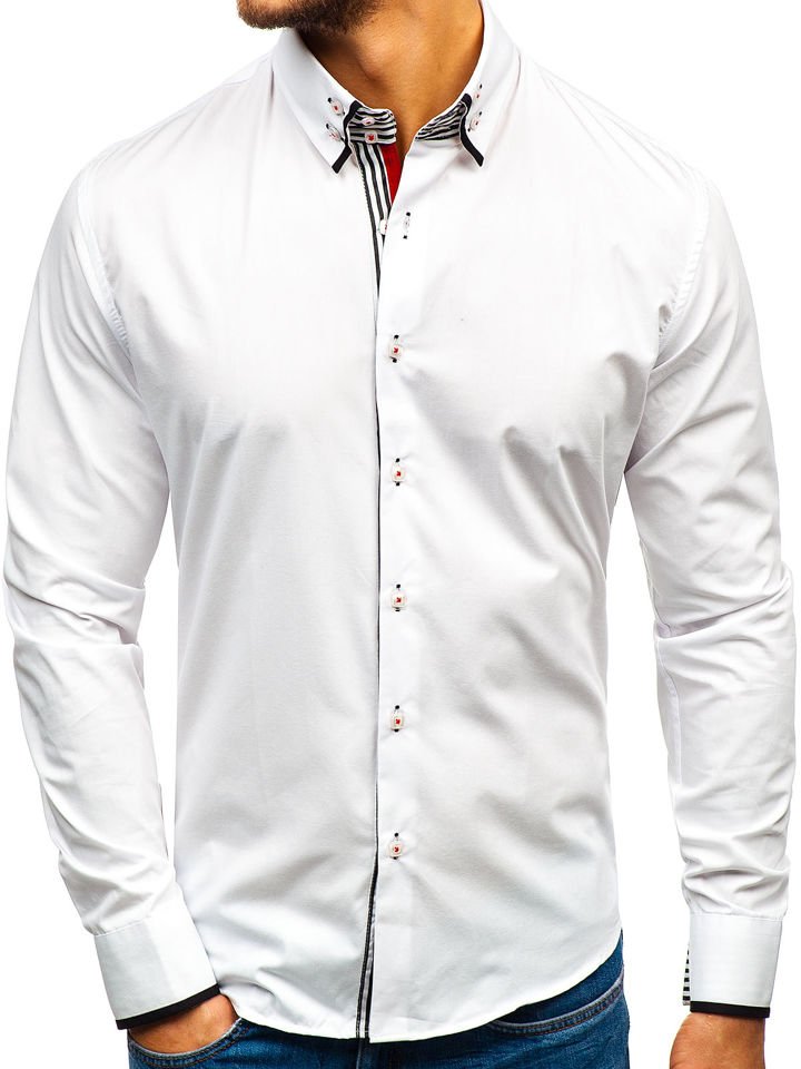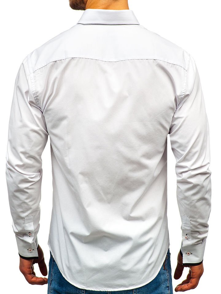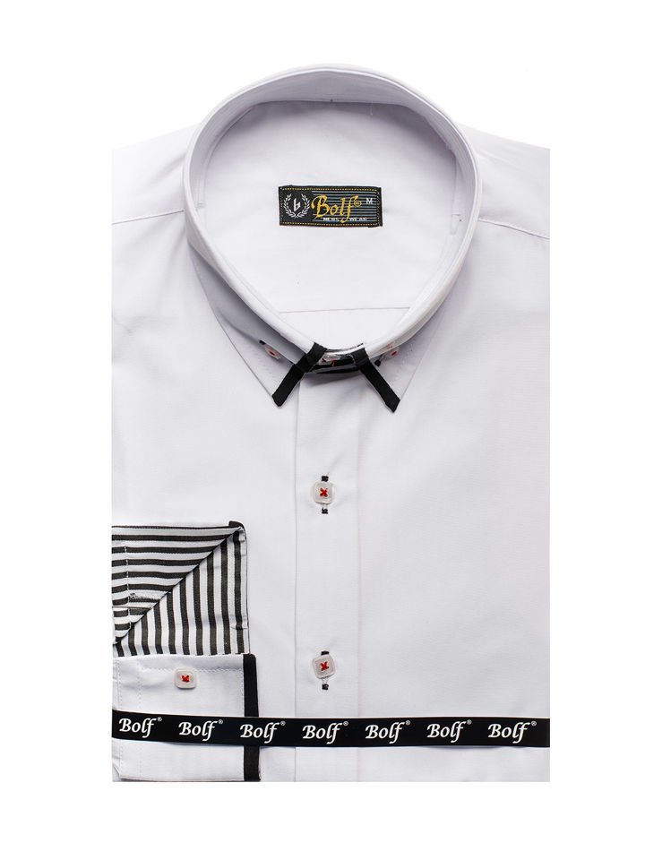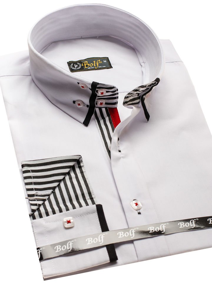 Πουκαμισο ανδρικο κομψο με μακρια μανικια λευκο-μαυρο Bolf 1747