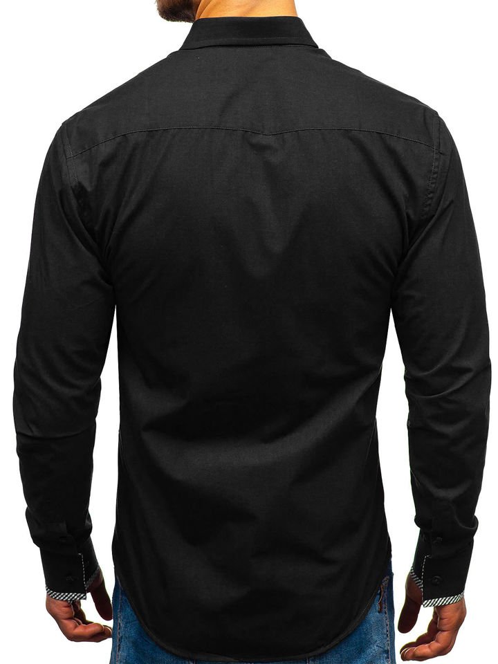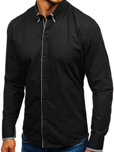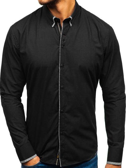 Πουκαμισο ανδρικο κομψο με μακρια μανικια μαυρο Bolf 2701-1
