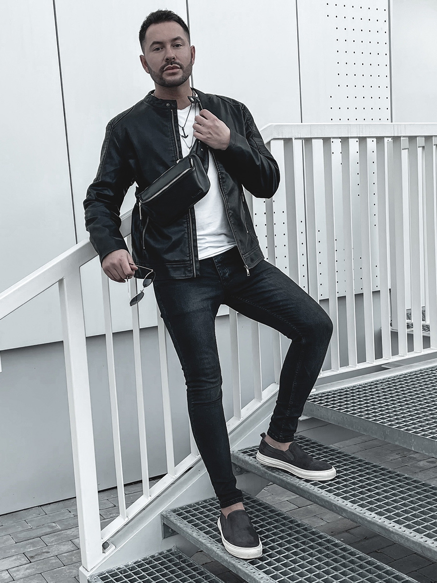 Μαύρα δερμάτινα μπουφάν Bolf σε ροκ στυλ. Καπιτονέ στους ώμους, με κομψό γιακά και τσέπες με φερμουάρ. Το μαύρο δερμάτινο μπουφάν κολακεύει τη σιλουέτα και δείχνει υπέροχο σε διάφορες εμφανίσεις. Φορέστε το με κομψό ή φανελένιο πουκάμισο. Συνδυάστε το με μακρυμάνικο μπλουζάκι, τζιν και αθλητικά παπούτσια.