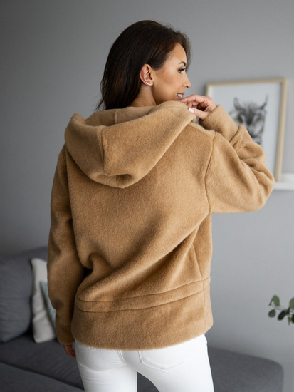 Μπουφαν γυναικειο κοντο παλτο με κουκουλα Μπεζ Bolf 9320