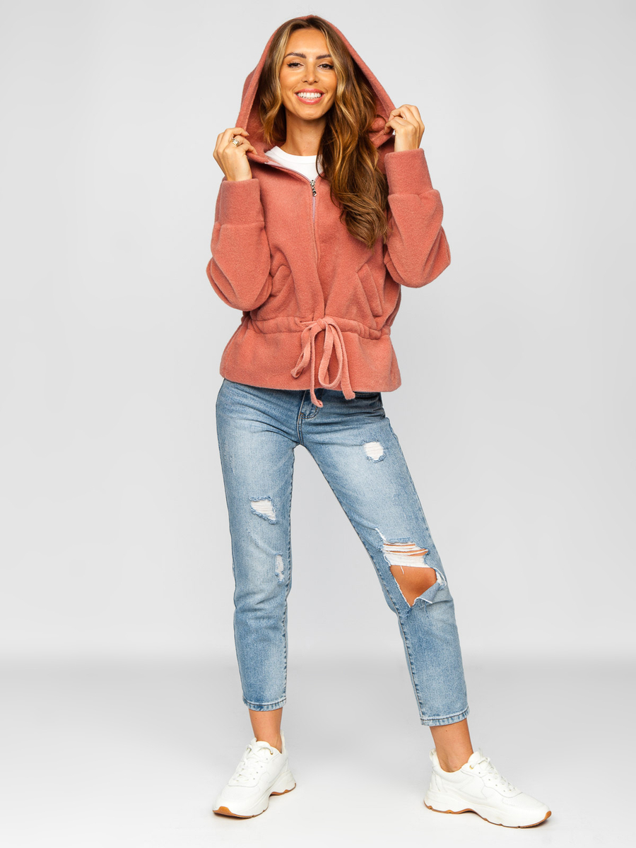 Μπουφαν γυναικειο κοντο παλτο με κουκουλα ροζ Bolf 9320