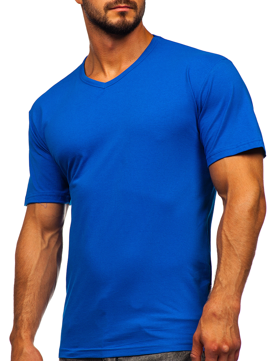Bolf 192131 μονόχρωμο μπλουζάκι με λαιμόκοψη σε V. Μπλε μπλουζάκι. Ταιριάζει όμορφα σε κάθε σιλουέτα και αγκαλιάζει καλά το σώμα, εκθέτοντας τους μύες. Είναι κατασκευασμένο από ευχάριστο μαλακό υλικό. Αυτό το μοντέλο διατίθεται σε πολλά κλασικά χρώματα και μπορεί να συνδυαστεί με πολλά άλλα χρώματα και σχέδια.