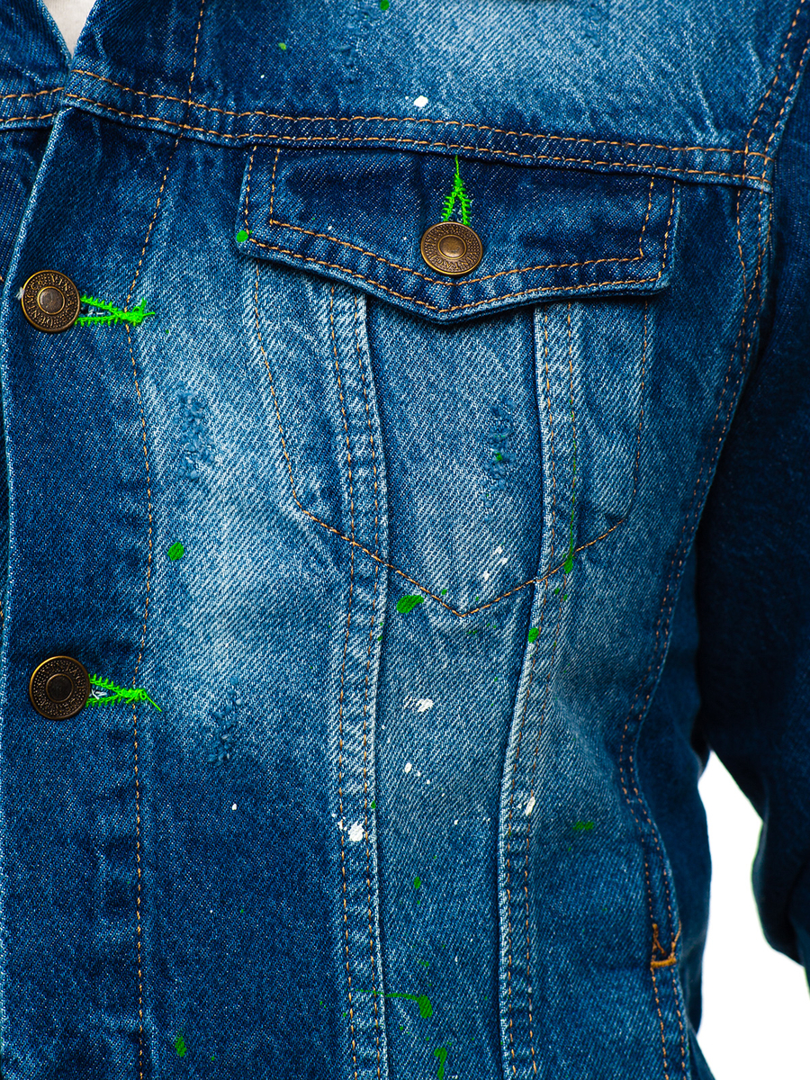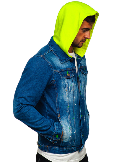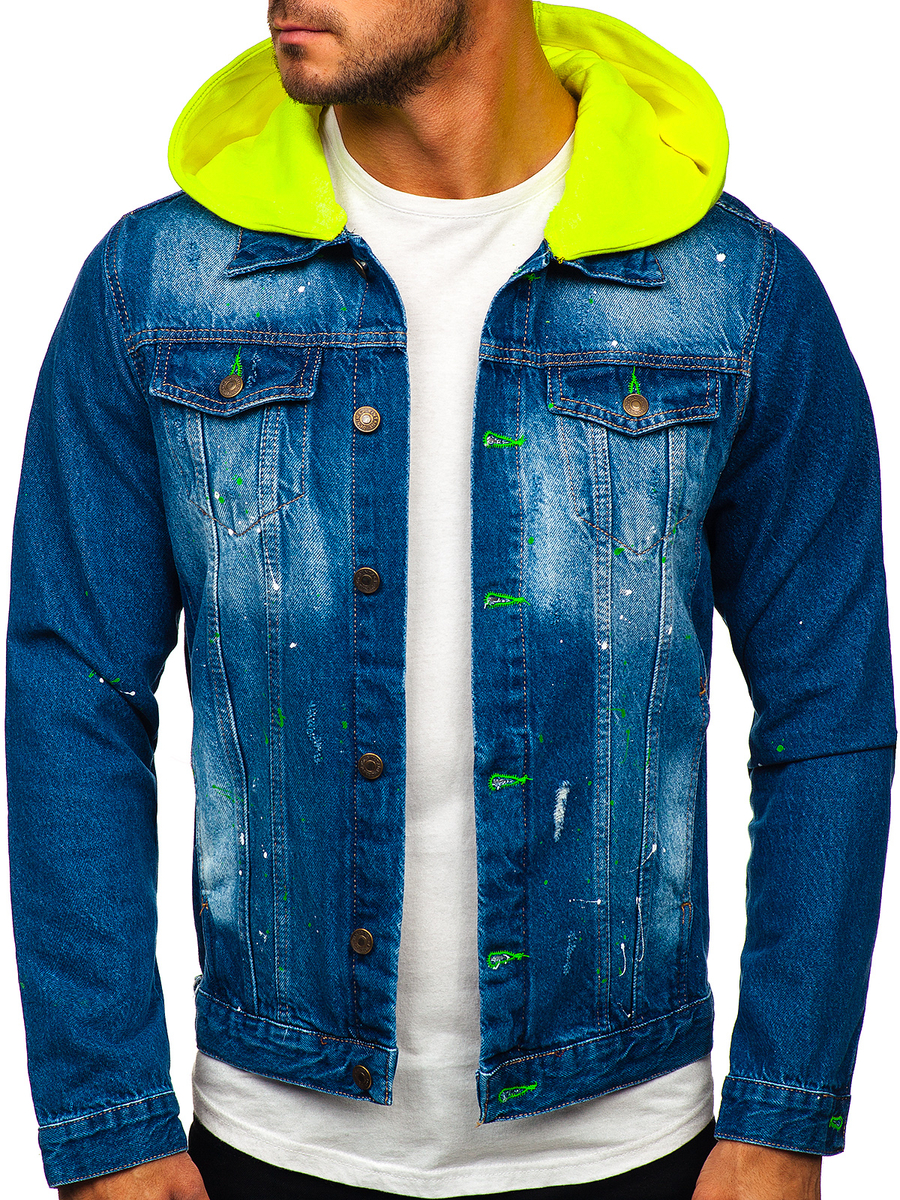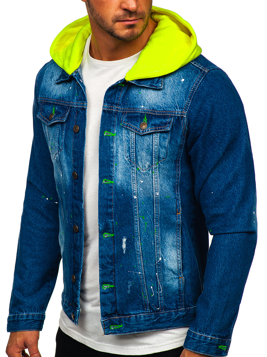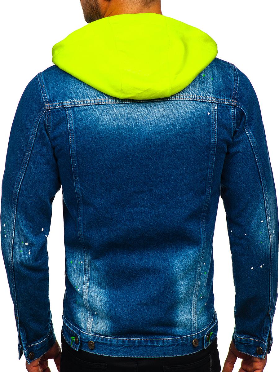 Ναυτικο μπλε τζιν μπουφαν ανδρικο με κουκουλα Bolf 1-2