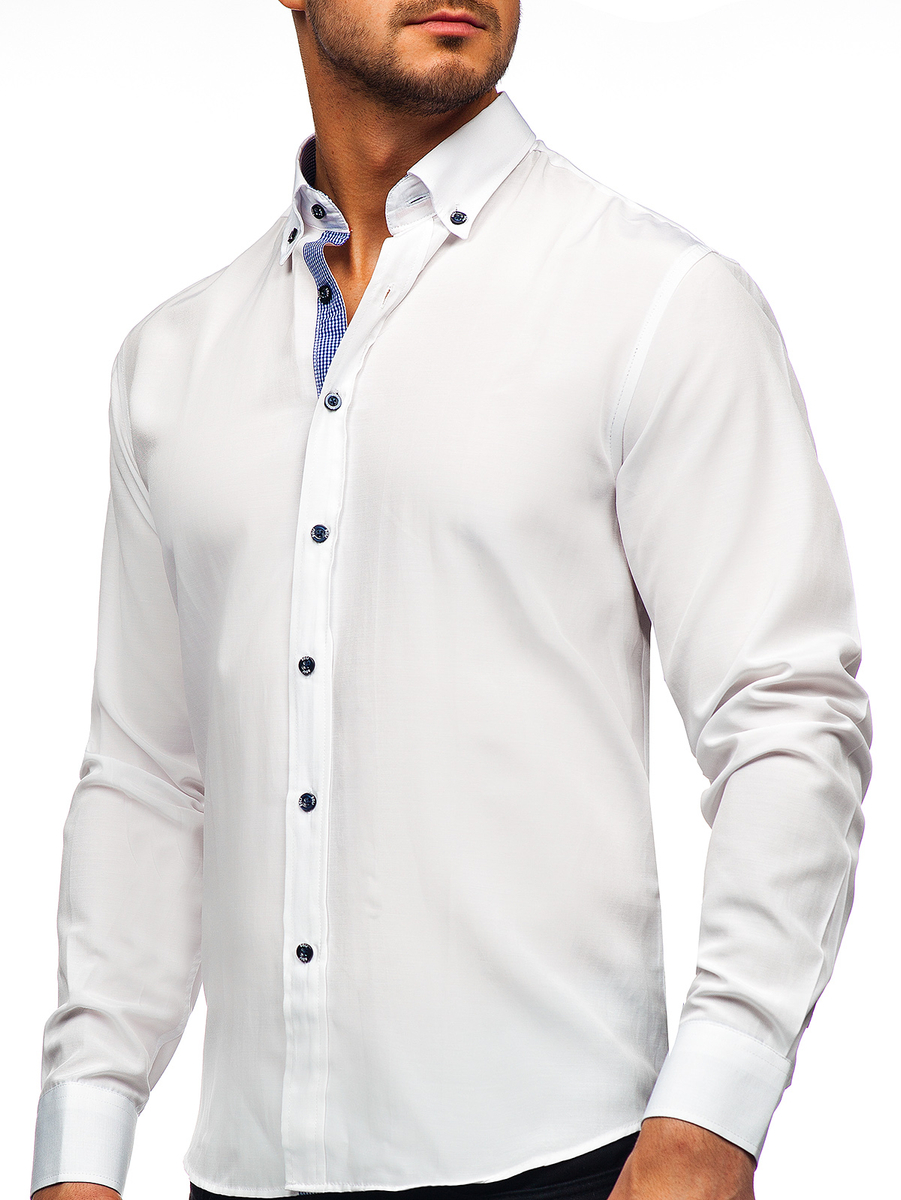 Λευκο Πουκαμισο ανδρικο με μακρια μανικια Bolf 20719