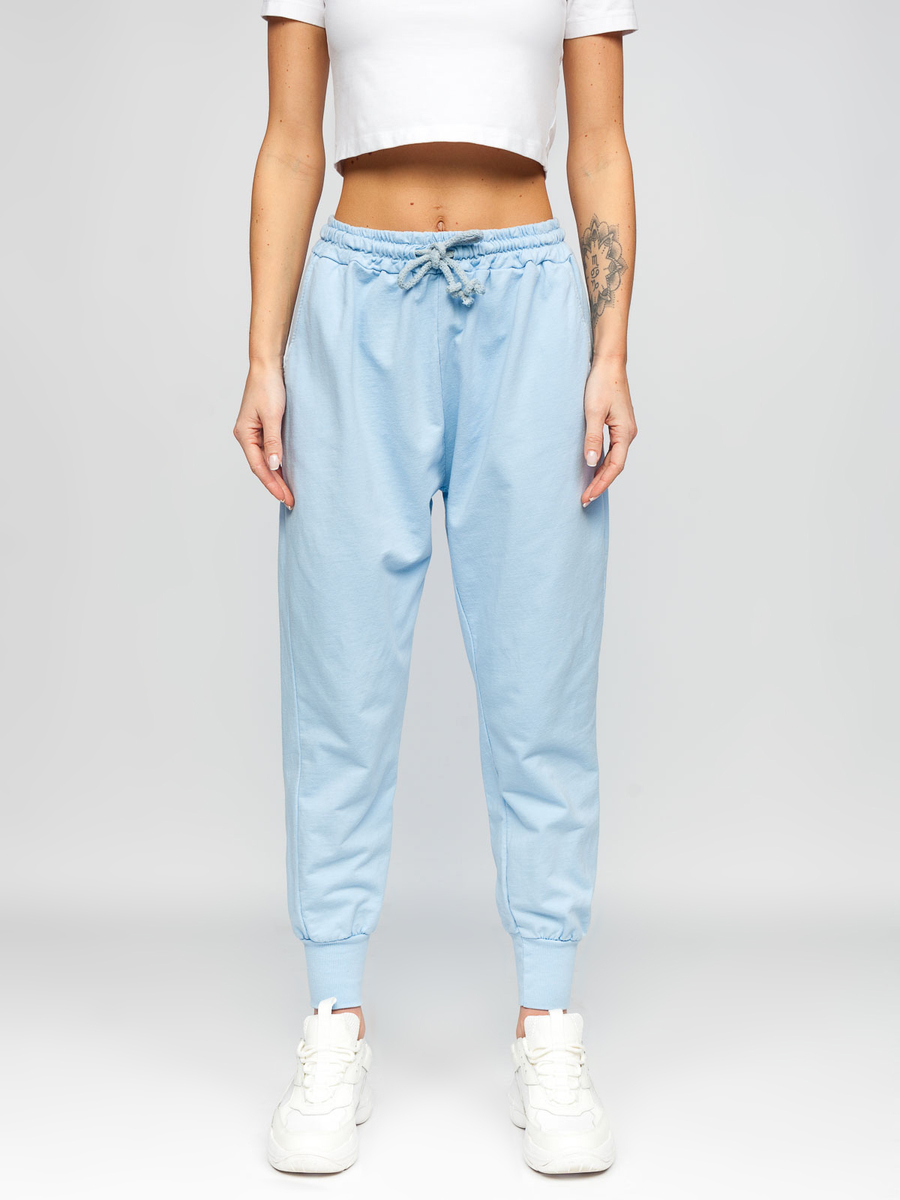 Τα γαλάζια γυναικεία παντελόνια φόρμας Bolf 0011 διατίθενται σε περισσότερες από δώδεκα χρωματικές επιλογές. Χάρη στην ρύθμιση στη μέση με ισχυρό λάστιχο και κορδόνι, προσαρμόζεται όμορφα στη σιλουέτα. Έχει δύο τσέπες χωρίς κλείσιμο Τα πόδια τελειώνουν με λάστιχο. Η ψηλόμεση πατνελόνι φόρμας basic τονίζει τέλεια τη μέση. Πολύ καλής ποιότητας υλικό, από 95% βαμβάκι και 5% ελαστάν, δίνει μια αίσθηση άνεσης. Η ποικιλία χρωμάτων επιτρέπει να ταιριάξει με πολλά στυλ. Φορέστε το στο σχολείο, στα ψώνια, στο τζόκινγκ ή στο περπάτημα. Για να δημιουργήσετε μια μοδάτη εμφάνιση, συνδυάστε το παντελόνι φόρμας με ένα μπλουζάκι και ένα φούτερ με φερμουάρ. Συνδυάστε το παντελόνι με ένα κλασικό φούτερ και ένα γιλέκο για το τέλειο ντύσιμο για μια βραδινή έξοδο.