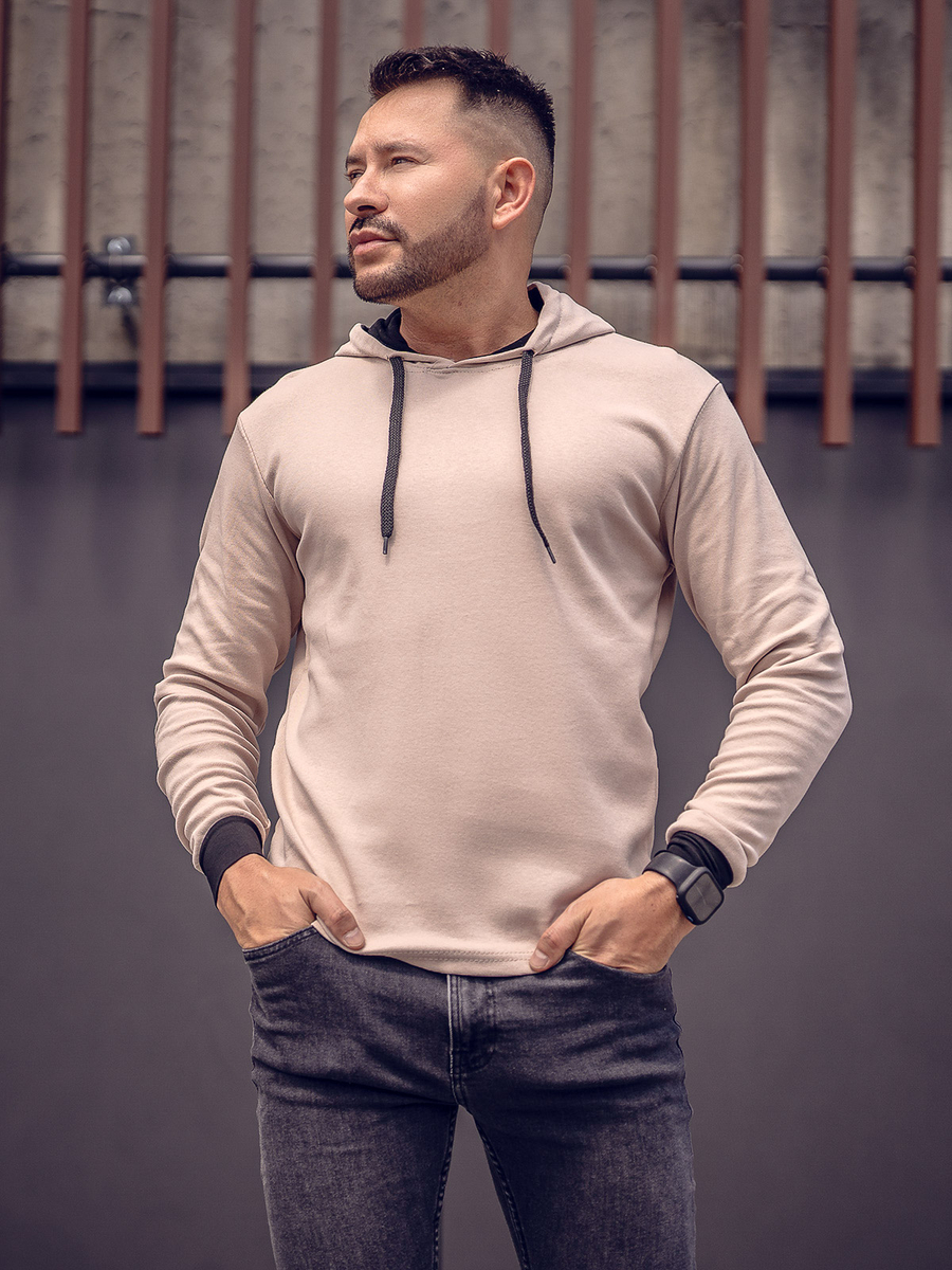 Μπεζ-Μαυρο με κουκουλα Φουτερ ανδρικο Bolf 145380