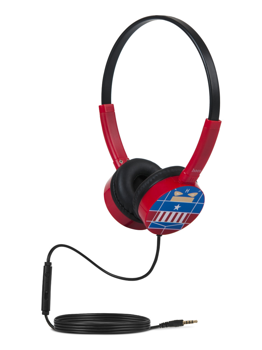 Κόκκινα ενσύρματα ακουστικά στο αυτί με μικρόφωνο Captain America για παιδιά W15KA