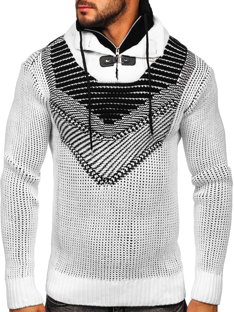 Αξιολογήσεις χρηστών για το Ανδρικό λευκό χοντρό πουλόβερ με όρθιο γιακά Bolf 2027