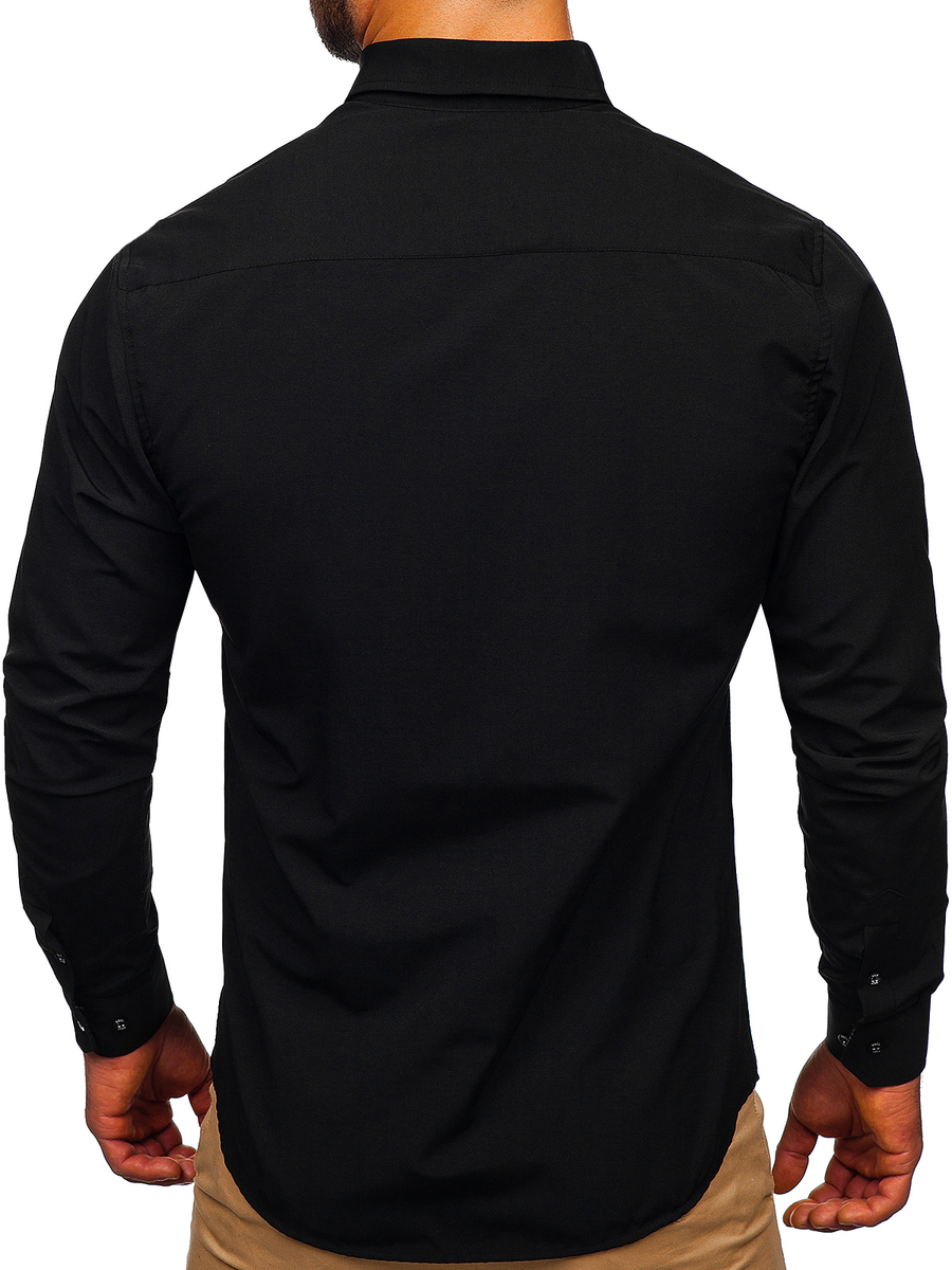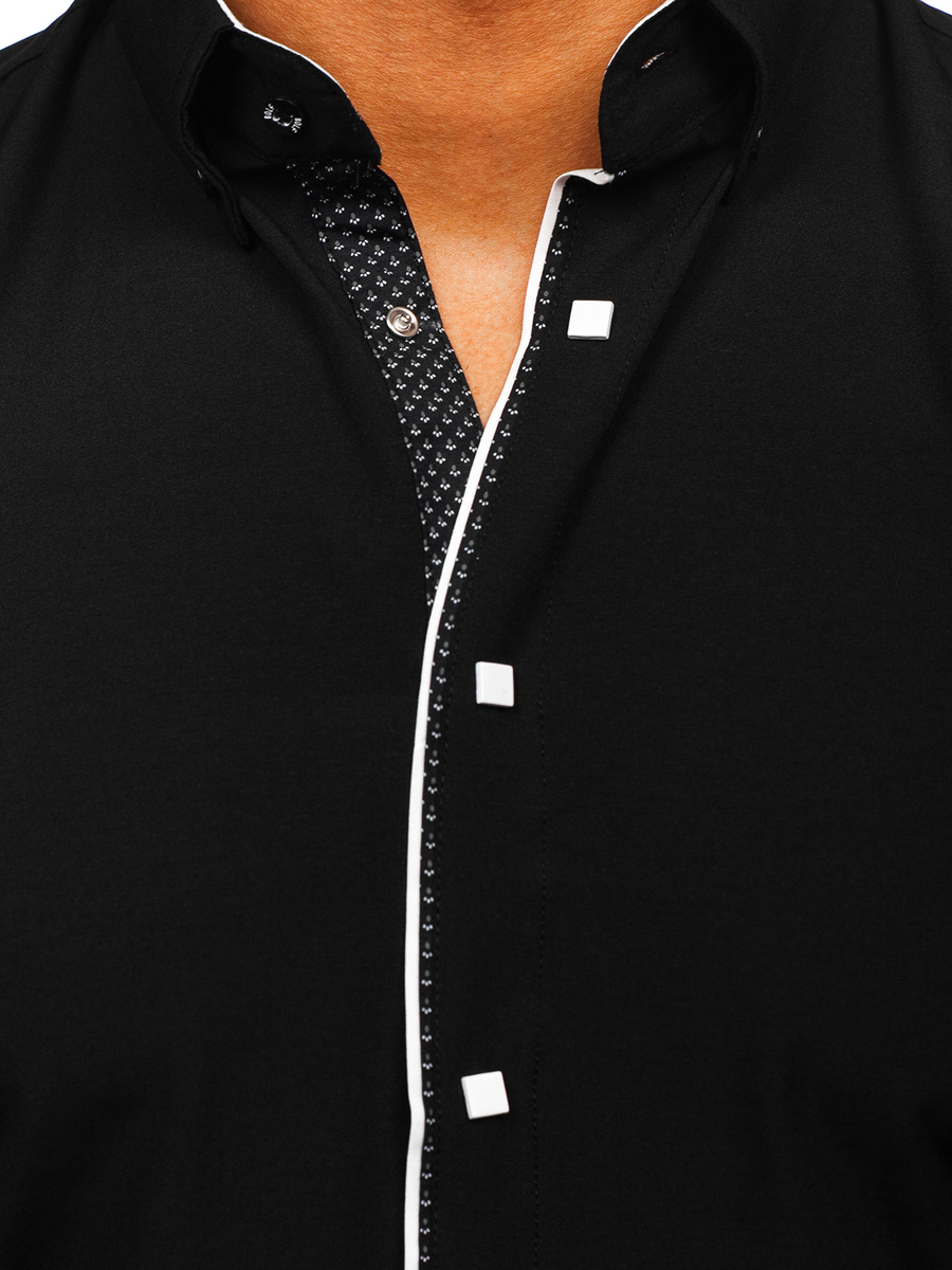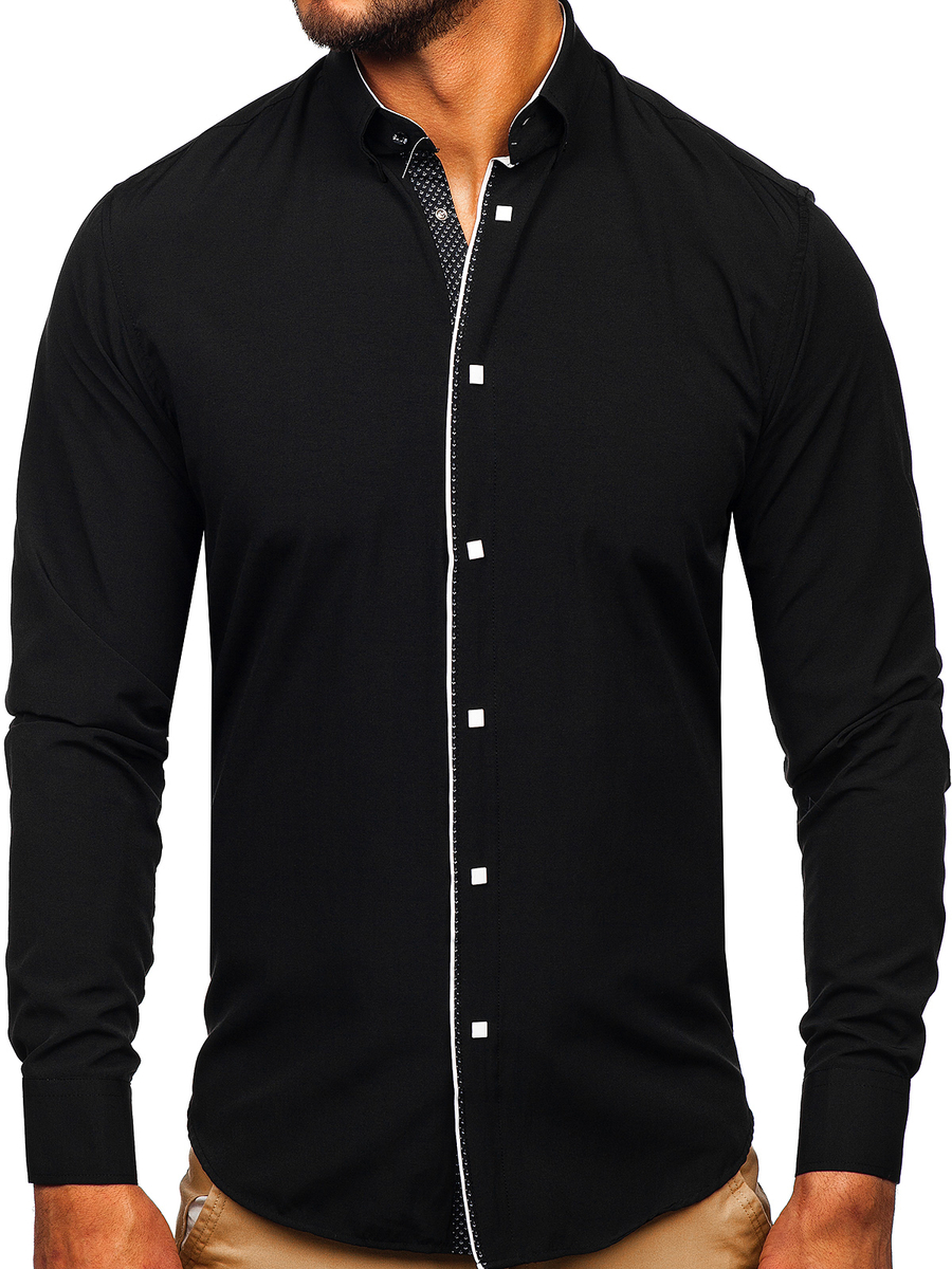 Czarne koszule z długim rękawem i kontrastowymi detalami. Modne, wygodne, doskonałej jakości. Czarna koszula męska slim fit Bolf rewelacyjnie wygląda z jeansami i spodniami chino. Ma fajny kołnierzyk z guziczkami. Znakomicie sprawdzi się w codziennych, stylowych outfitach.