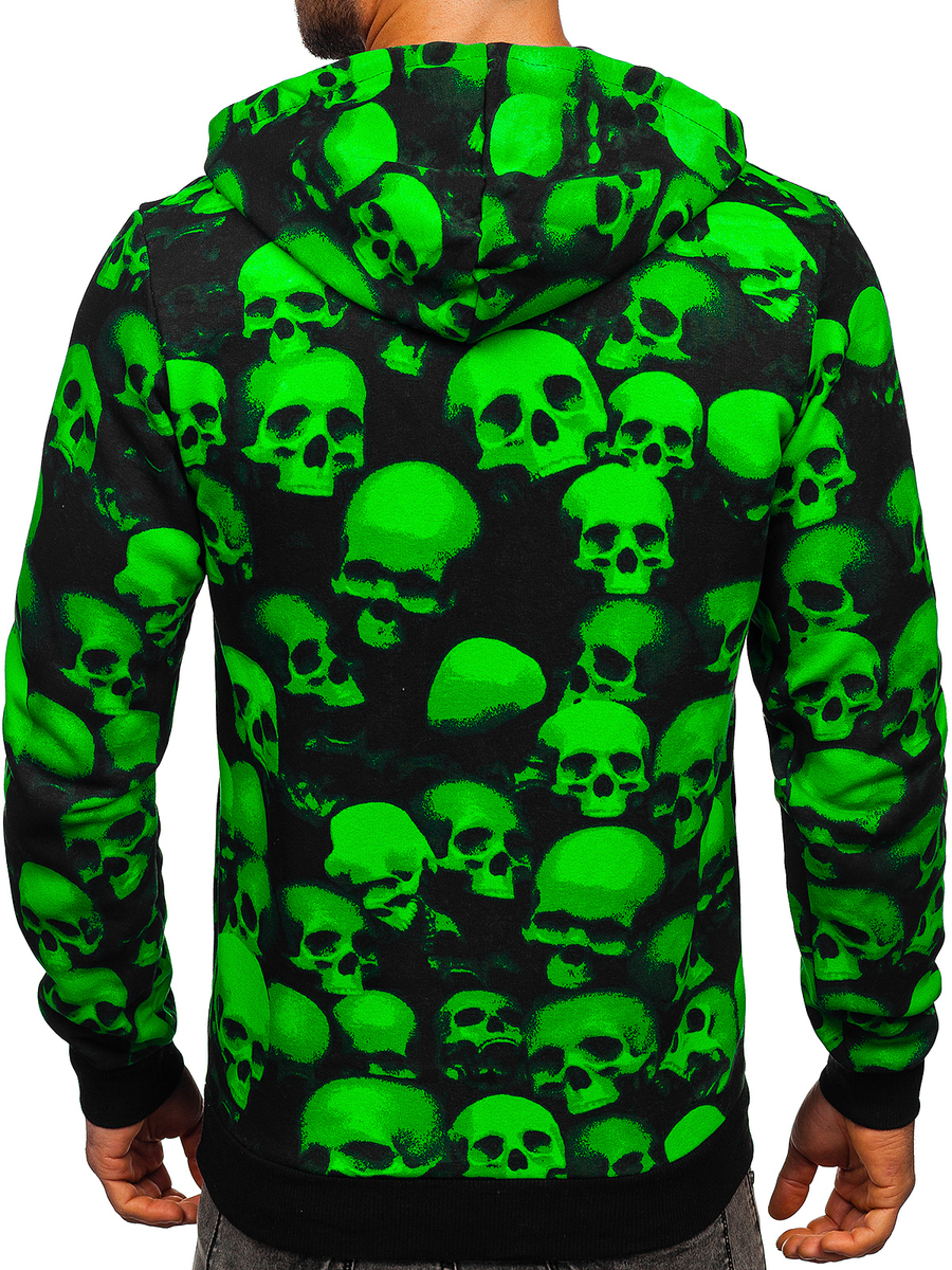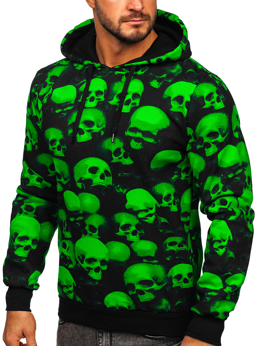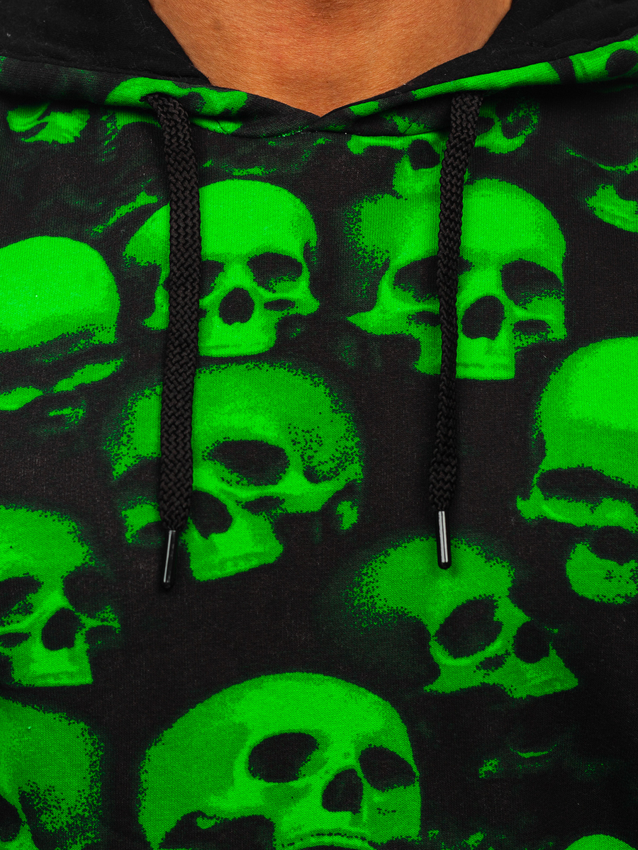 Czarno-zielona z nadrukiem bluza męska z kapturem Denley 141007 jest propozycją must have na każdą porę roku! Ten model posiada regulowany, dwuwarstwowy kaptur. Rękawy i dółzakończone są ściągaczem, który zapewnia ochronę przed zimnem. Wykonana została w 70% z bawełny oraz w 30% z poliestru. Dwie kieszenie boczne dodają jej praktycznego charakteru.Model ten wyróżnia się niebanalnymi, ozdobnymi nadrukami w kolorze czarno-zielonym, które urozmaicą każdą stylizację. Bluza z kapturem sprawdzi się o każdej porze roku i w każdych okolicznościach. Załóż ją podczas aktywności sportowej, spaceru czy wypadu na miasto.Łącząc ją zespodniami dresowymi ikurtką przejściową uzyskasz sportowy look. Na wypad na miasto świetnie skomponuje się z jeansami,bojówkami lub joggerami.