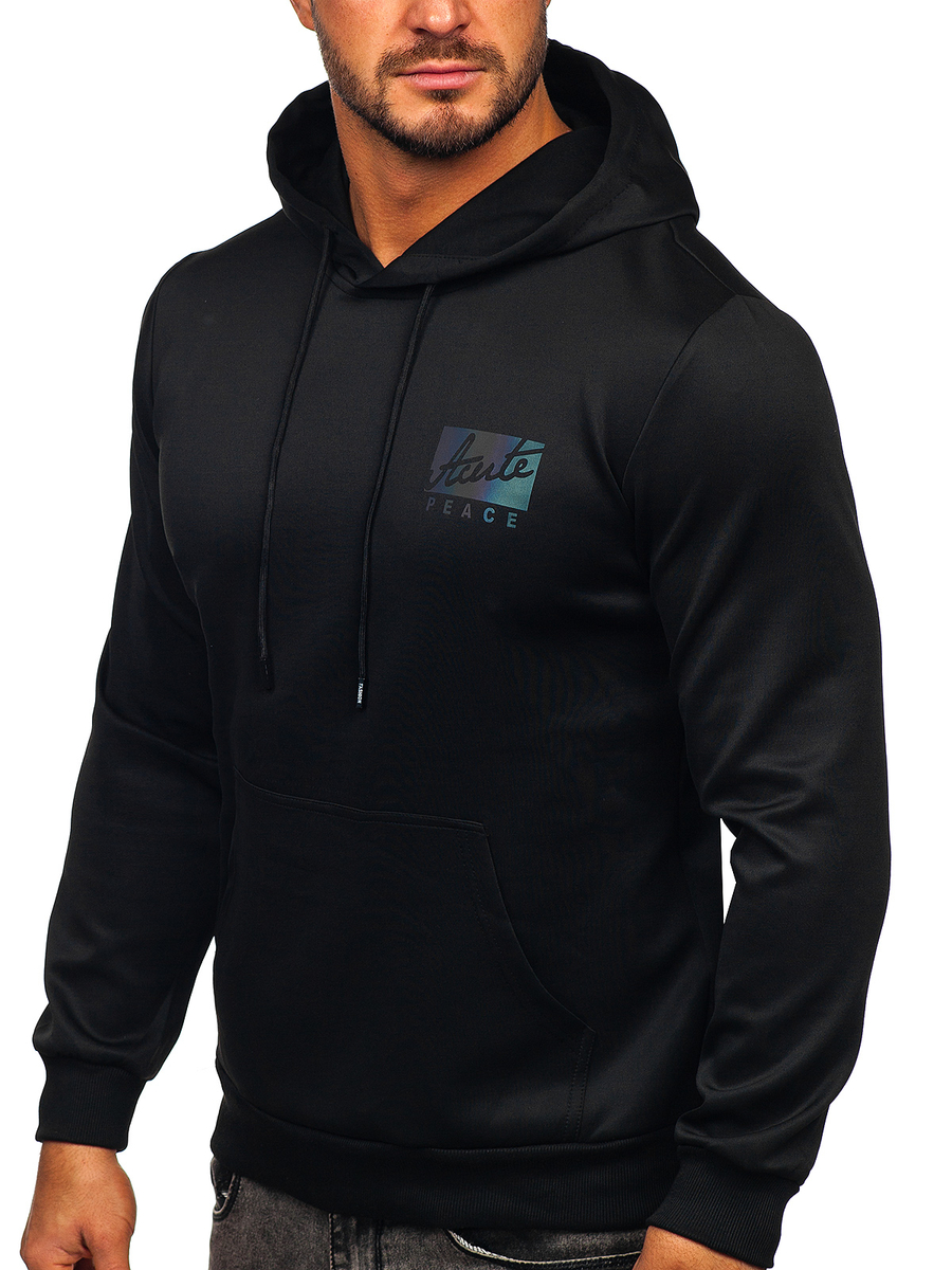 Αξιολογήσεις χρηστών για το Ανδρικό μαύρο φούτερ με κουκούλα και στάμπα Bolf HY971
