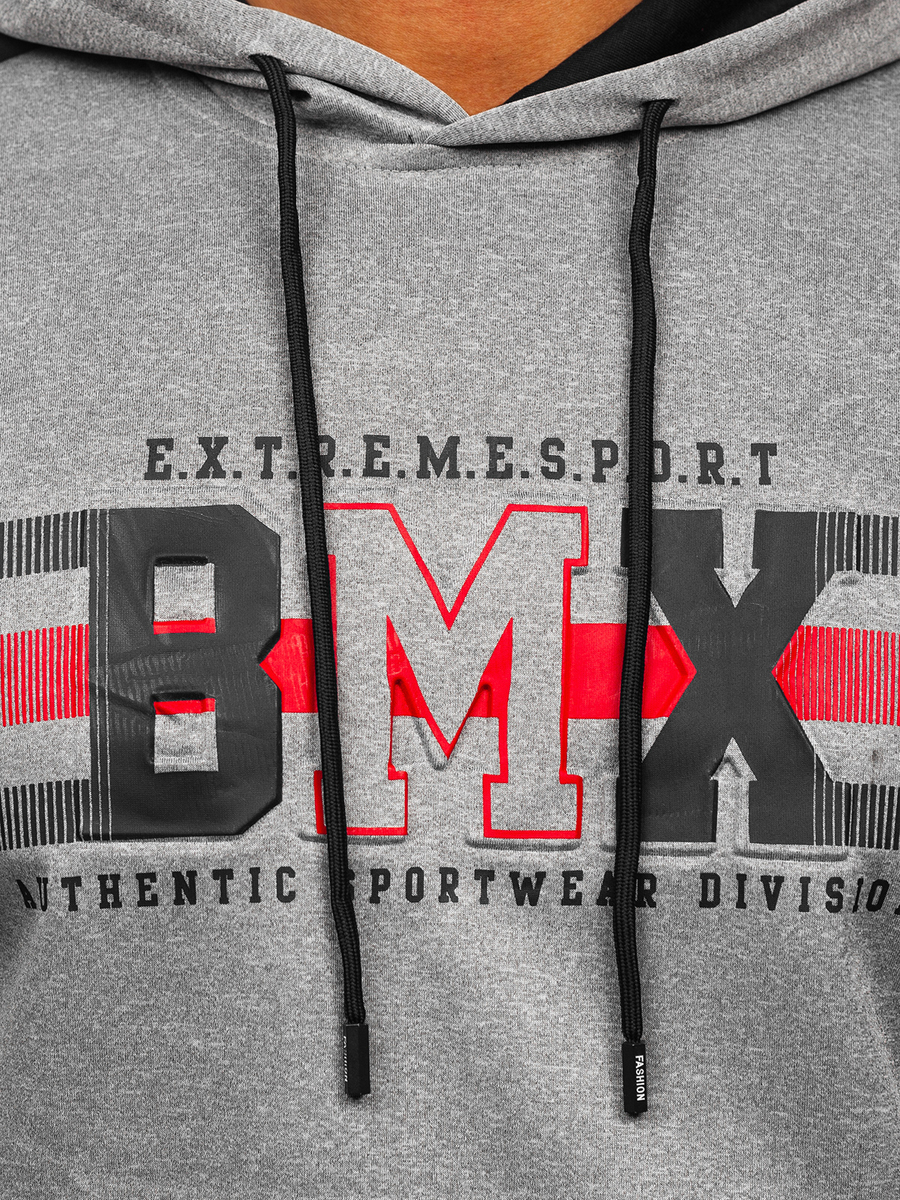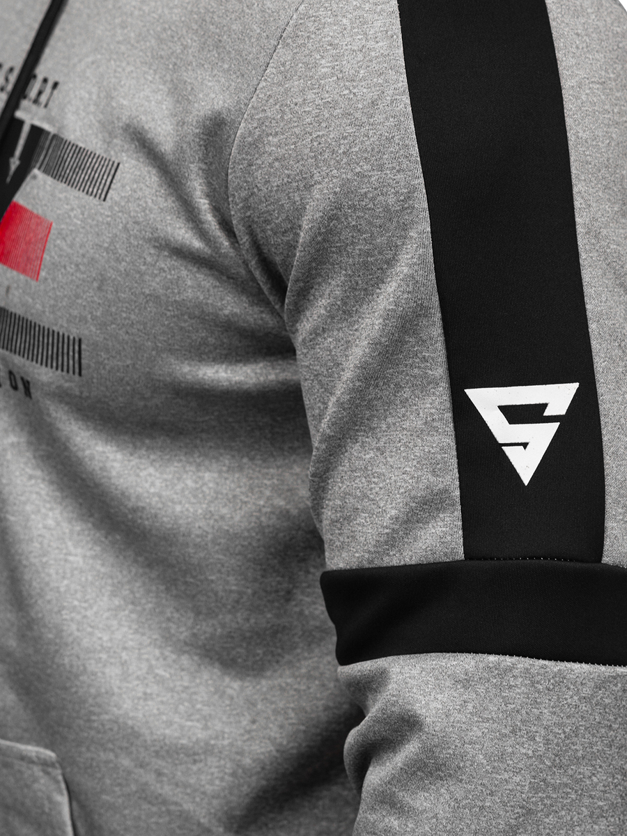 Szara z nadrukiem bluza męska z kapturem Denley HY973to jedna z wielu naszych propozycji na chłodniejsze dni. Występuje w trzech wariantach kolorystycznych. Dzięki designerskiemu nadrukowi, który znajduje się na froncie, bluza nabiera niebanalnego charakteru. Model ten posiada praktyczną kieszeń typu kangurka. Dzięki regulacji, którą posiada dwuwarstwowy kaptur, możesz uchronić się przed wiatrem oraz chłodem. Dół oraz rękawy bluzy zakończone są ściągaczem, który podkreśla jej sportowy styl. Produkt wykonany jest z miłego w dotyku i wytrzymałego w użytkowaniu materiału. Dedykowany jest dla zwolenników aktywnego trybu życia.Ubierzją podczas joggingu, wymagającego treningu czy spaceru. Bluza sprawdzi się o każdej porze roku. Połącz ją zjeansami tworząc casualowy outfit. Bluza świetnie sprawdzi się zjoggerami oraz kurtką bomberką.