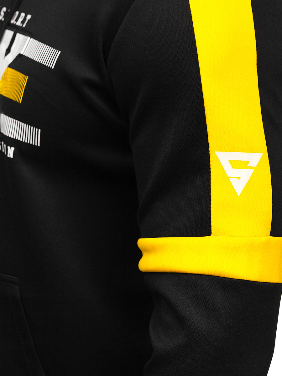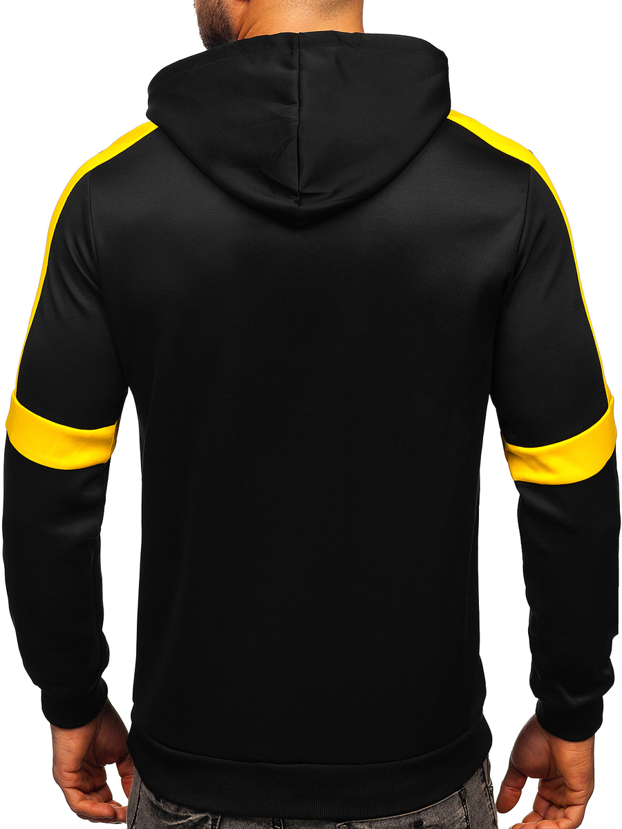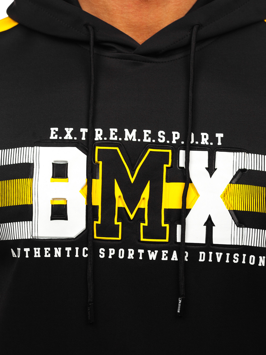 Czarna z nadrukiem bluza męska z kapturem Denley HY973to jedna z wielu naszych propozycji na chłodniejsze dni. Występuje w trzech wariantach kolorystycznych. Dzięki designerskiemu nadrukowi, który znajduje się na froncie, bluza nabiera niebanalnego charakteru. Model ten posiada praktyczną kieszeń typu kangurka. Dzięki regulacji, którą posiada dwuwarstwowy kaptur, możesz uchronić się przed wiatrem oraz chłodem. Dół oraz rękawy bluzy zakończone są ściągaczem, który podkreśla jej sportowy styl. Produkt wykonany jest z miłego w dotyku i wytrzymałego w użytkowaniu materiału. Dedykowany jest dla zwolenników aktywnego trybu życia.Ubierzją podczas joggingu, wymagającego treningu czy spaceru. Bluza sprawdzi się o każdej porze roku. Połącz ją zjeansami tworząc casualowy outfit. Bluza świetnie sprawdzi się zjoggerami oraz kurtką bomberką.