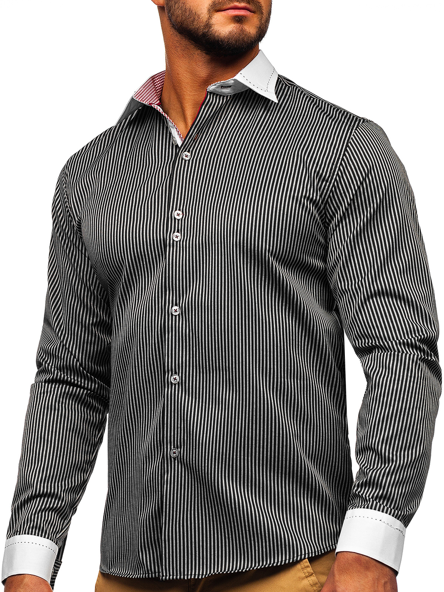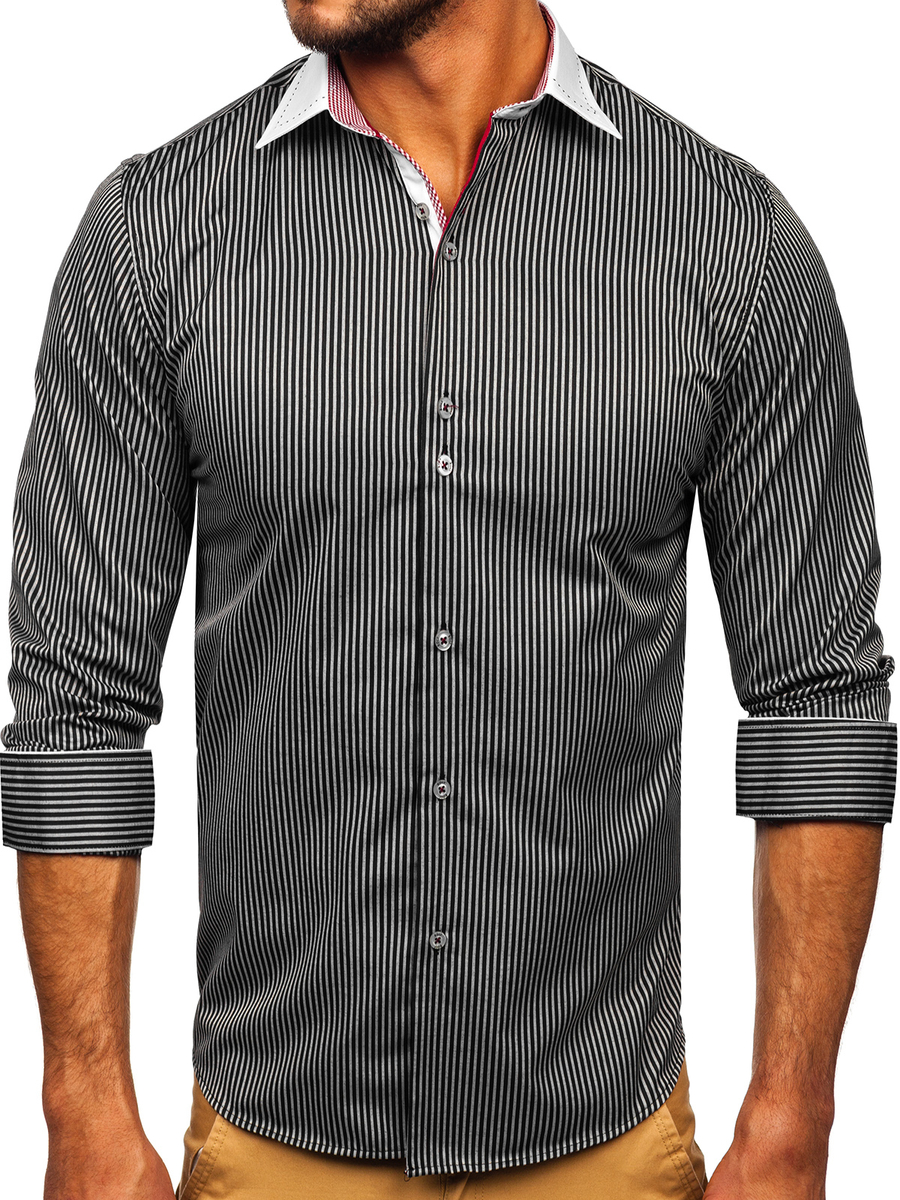 Fantastyczne czarne koszule męskie w paski z kolekcji Bolf to świetny wybór na wiele okazji. Czarna koszula slim fit idealnie nada się do wielu stylizacji. Możesz zakładać ją pod marynarkę ze spodniami chinos i będzie prezentowała się naprawdę stylowo i elegancko. Lub na luzie ubierz ją do jeansów.