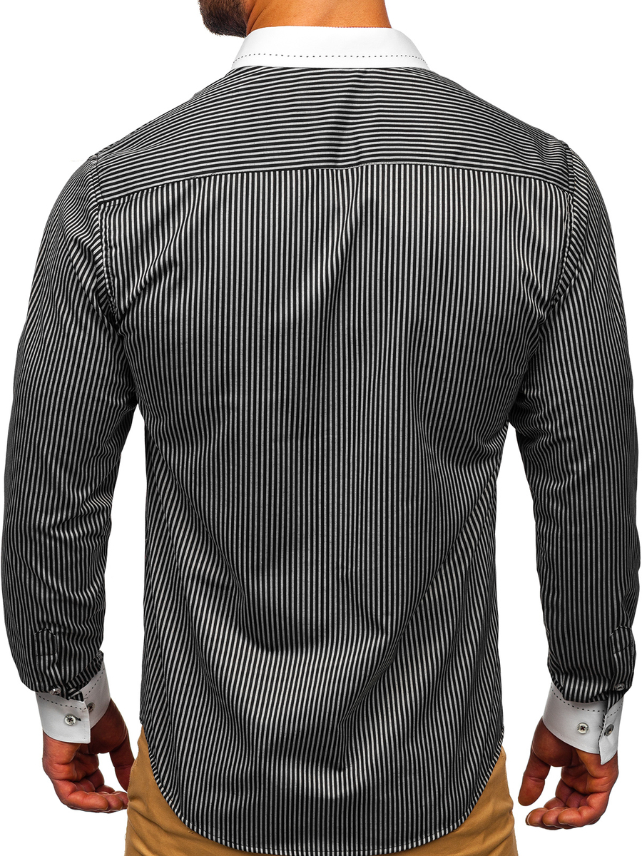 Μαύρο ανδρικό γιγέ μακρυμάνικο πουκάμισο Bolf 4785