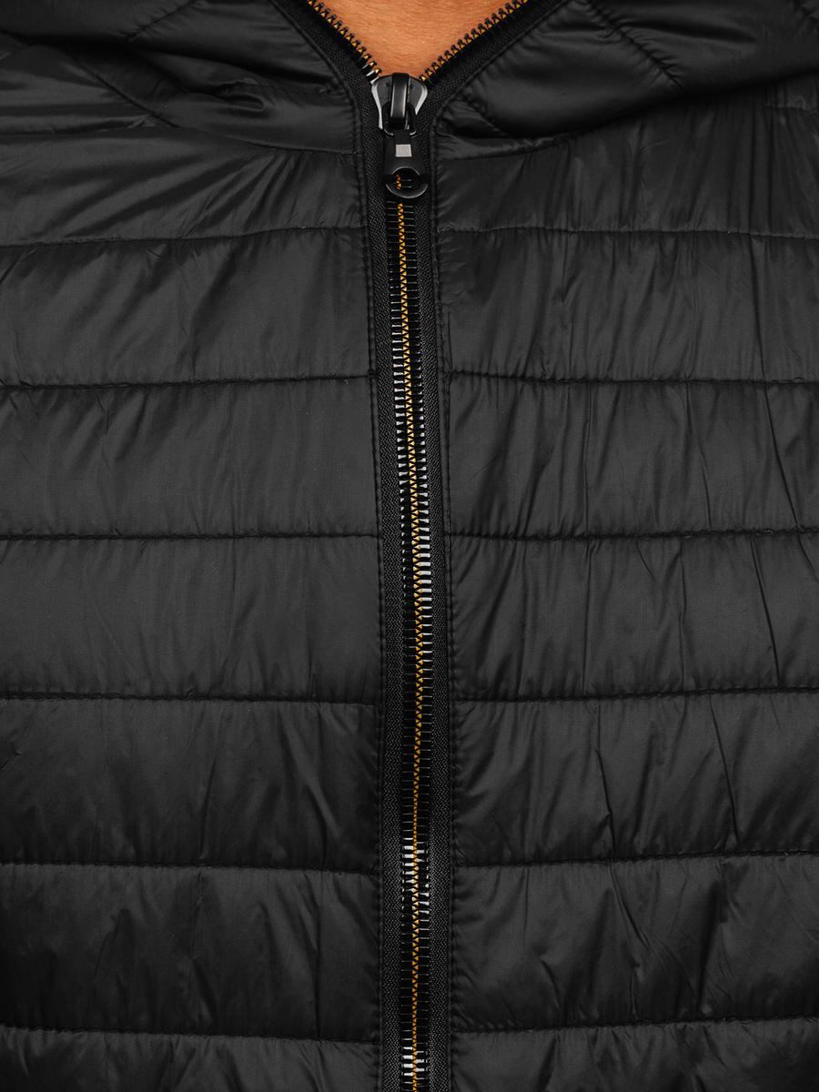 Μαύρο ανδρικό καπιτονέ γιλέκο μα κουκούλα Bolf 7106