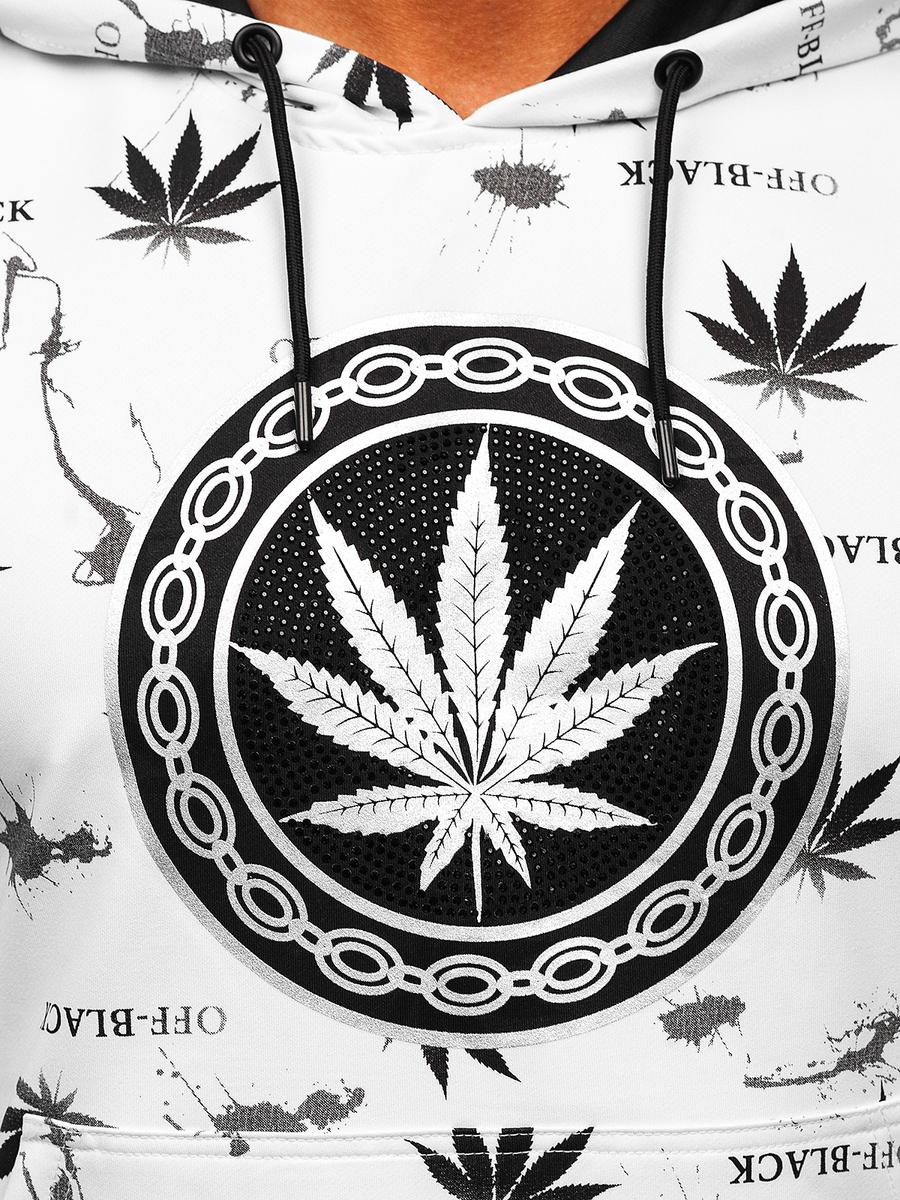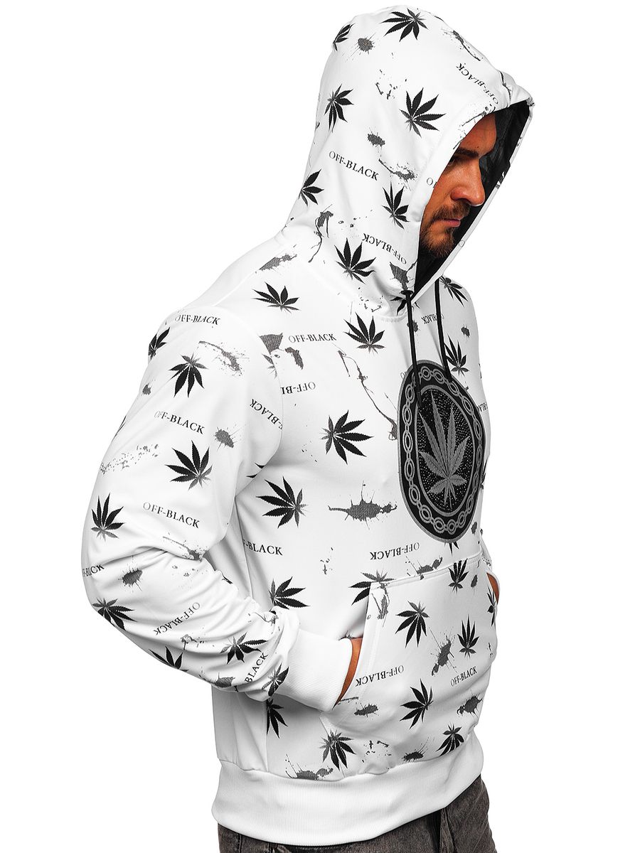 Λευκό ανδρικό φούτερ με στάμπα και κουκούλα Bolf HM628
