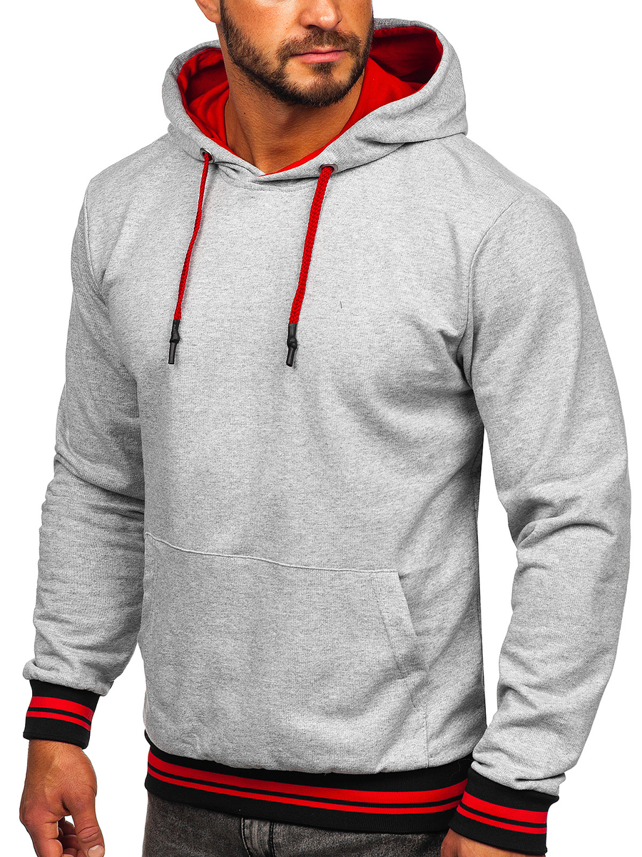 Ανδρική μπλούζα με κουκούλα ανοιχτό γκρι Bolf 145369