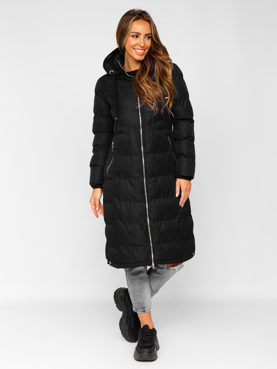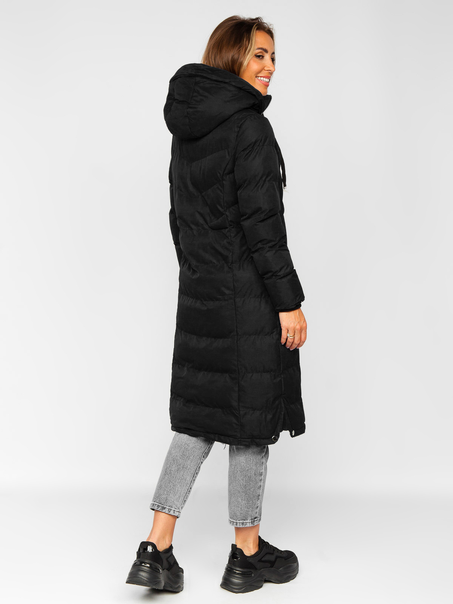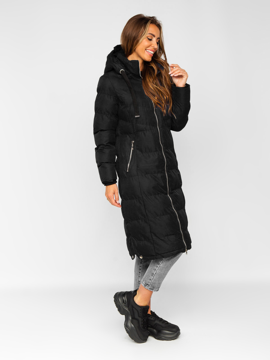 Αξιολογήσεις χρηστών για το Μαύρο μακρύ γυναικείο καπιτονέ παλτό μπουφάν χειμωνιάτικο με κουκούλα Bolf 5M736