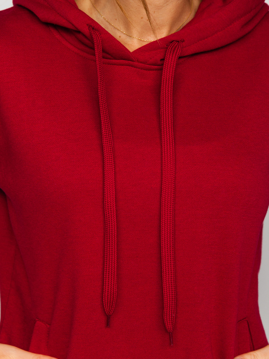 Μπορντό μακρύ γυναικείο φούτερ με την κουκούλα Bolf YS10005-A