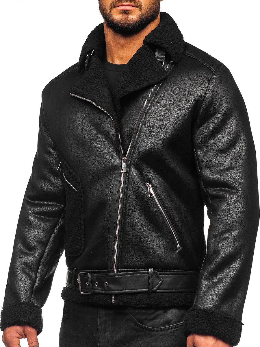 Αξιολογήσεις χρηστών για το Μαύρο ανδρικό δερμάτινο μπουφάν ramones με γούνινη επένδυση Bolf 11Z8006