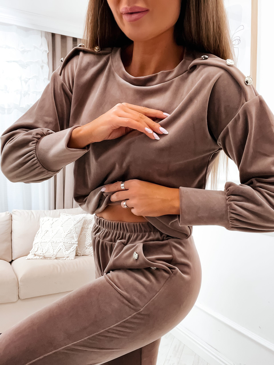 Καφέ βελούδινο γυναικείο σετ φόρμας δύο τεμαχίων Bolf 642
