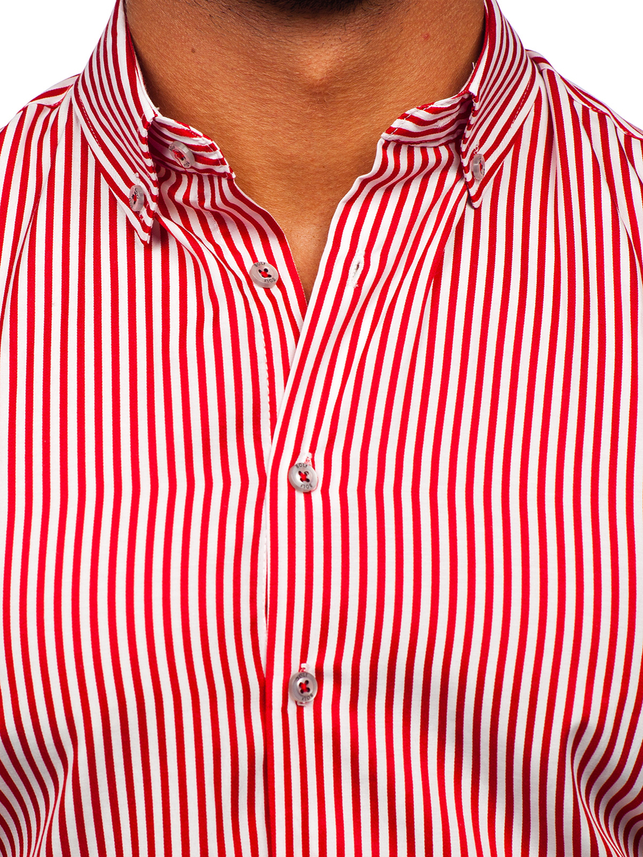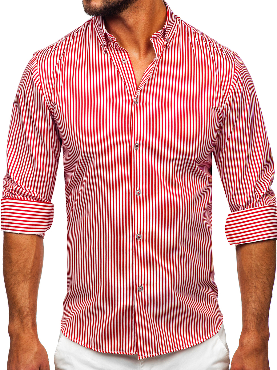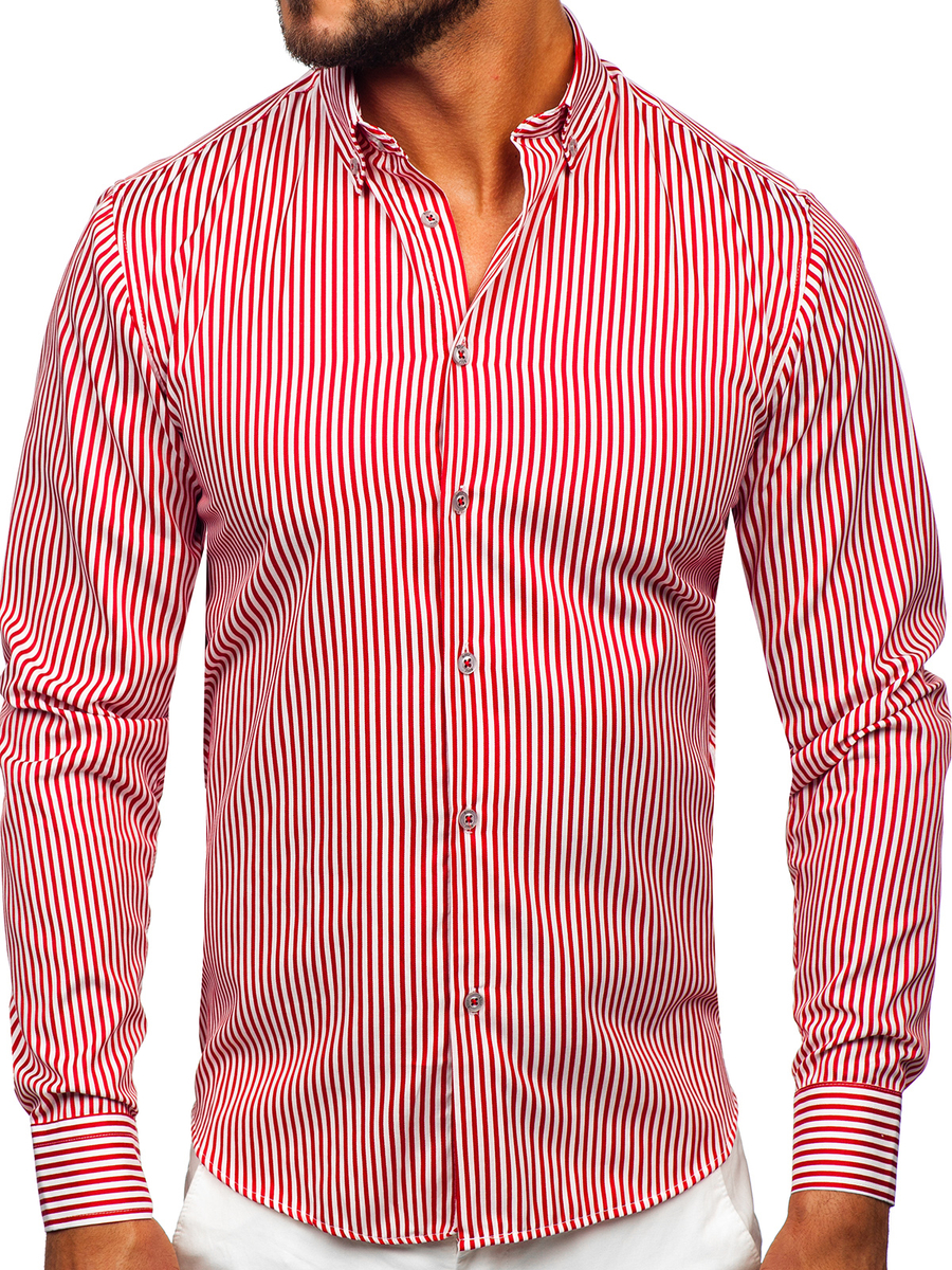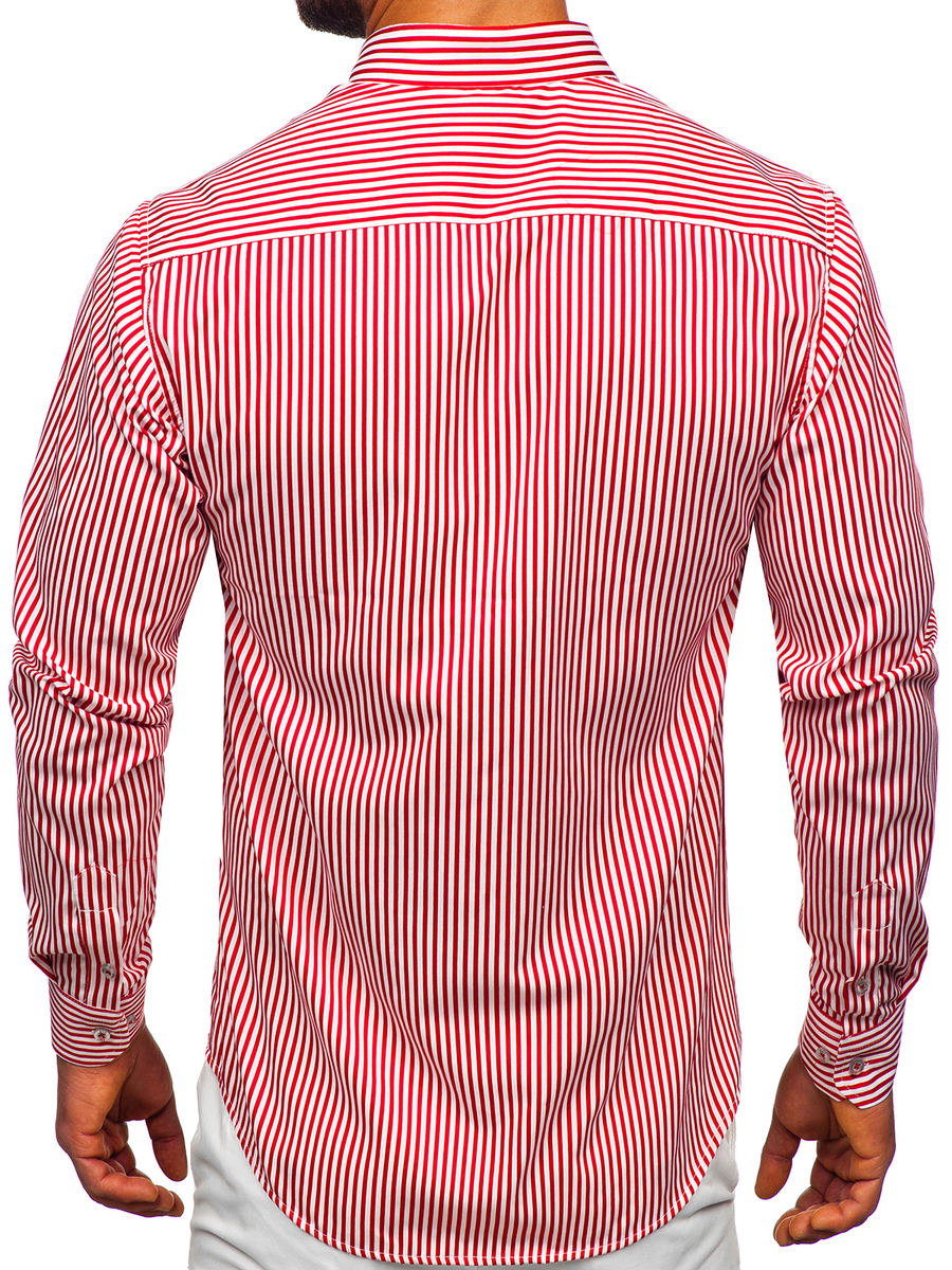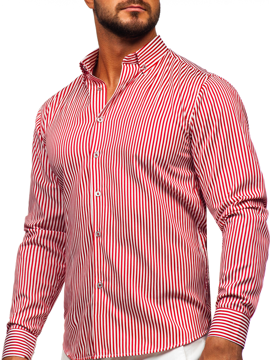 Κόκκινο ανδρικό μακρυμάνικο ριγέ πουκάμισο Bolf 22731