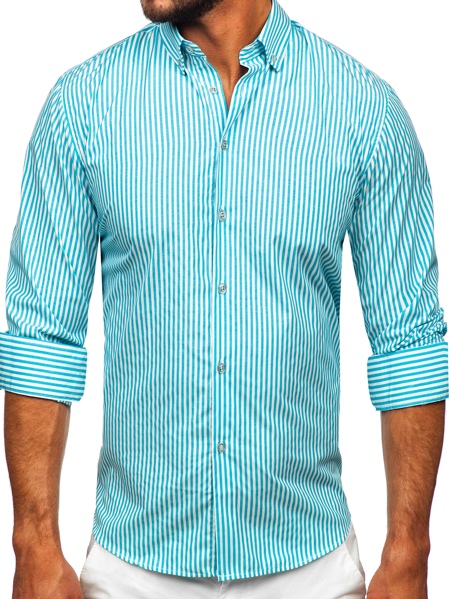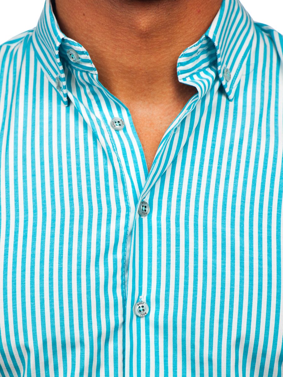 Τιρκουάζ ανδρικό μακρυμάνικο ριγέ πουκάμισο Bolf 22731
