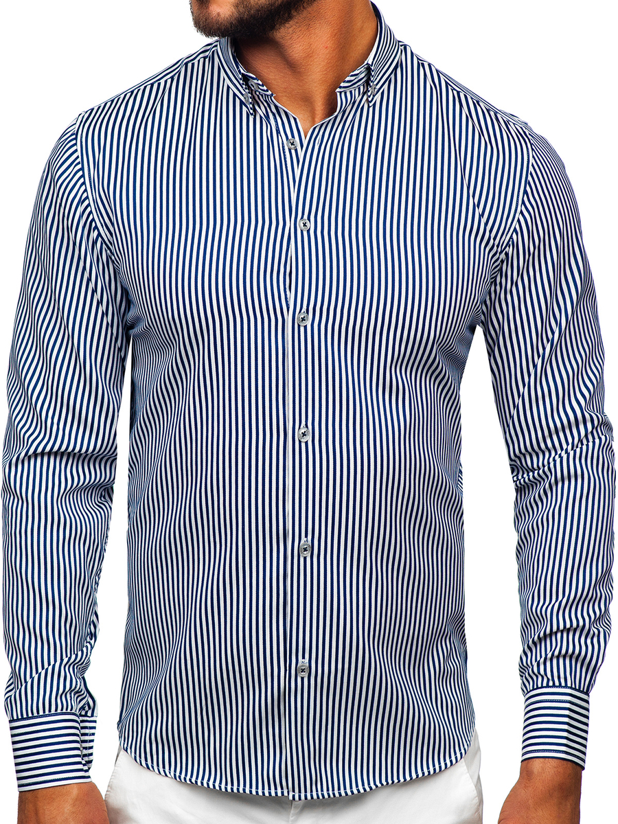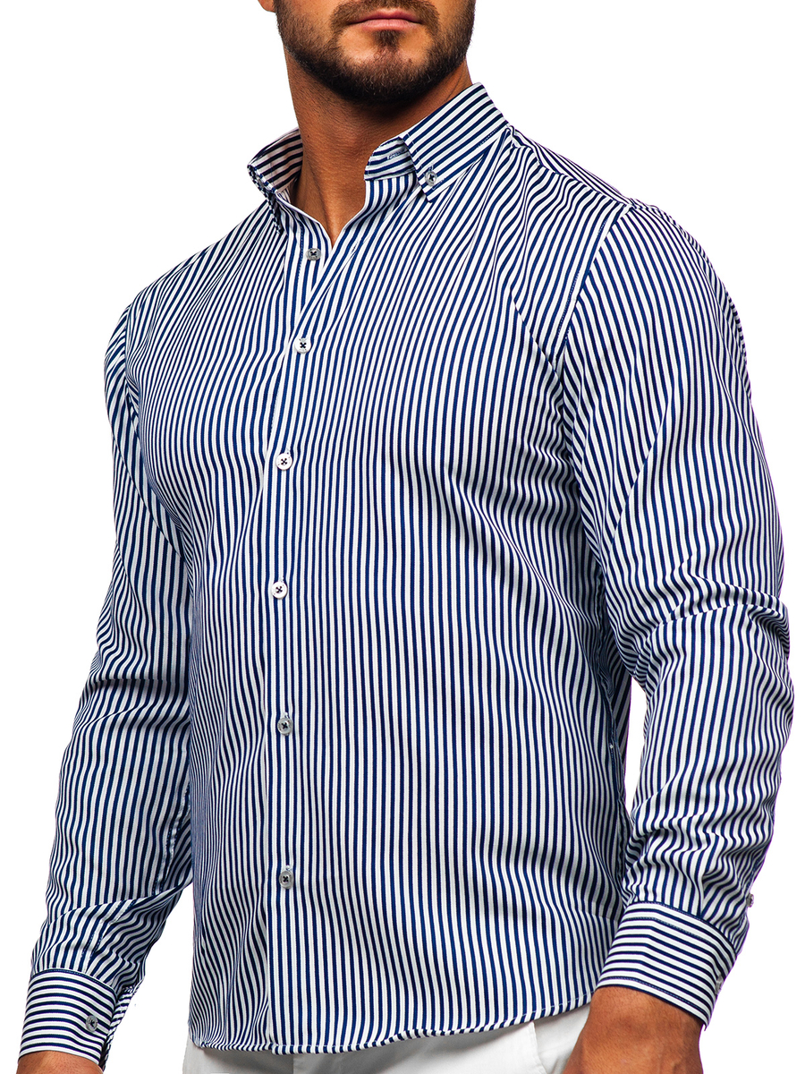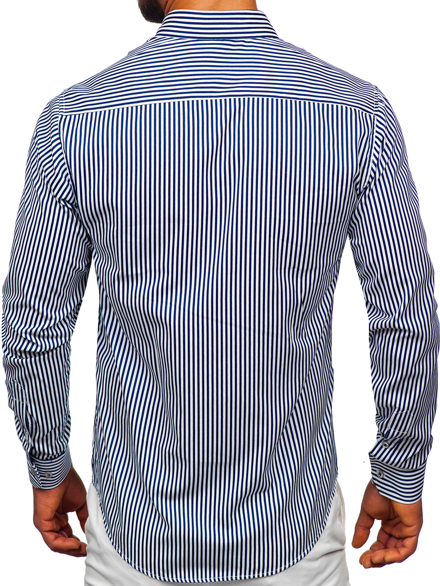 Μπλε μαρέν ανδρικό μακρυμάνικο ριγέ πουκάμισο Bolf 22731