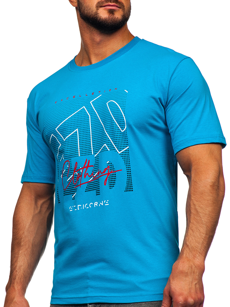 Τιρκουάζ ανδρικό βαμβακερό t-shirt Bolf 14748