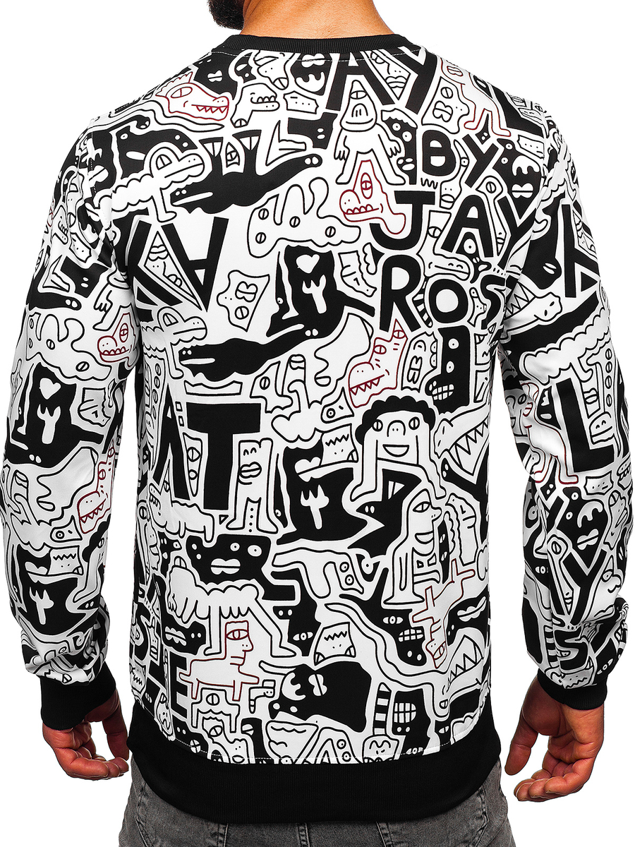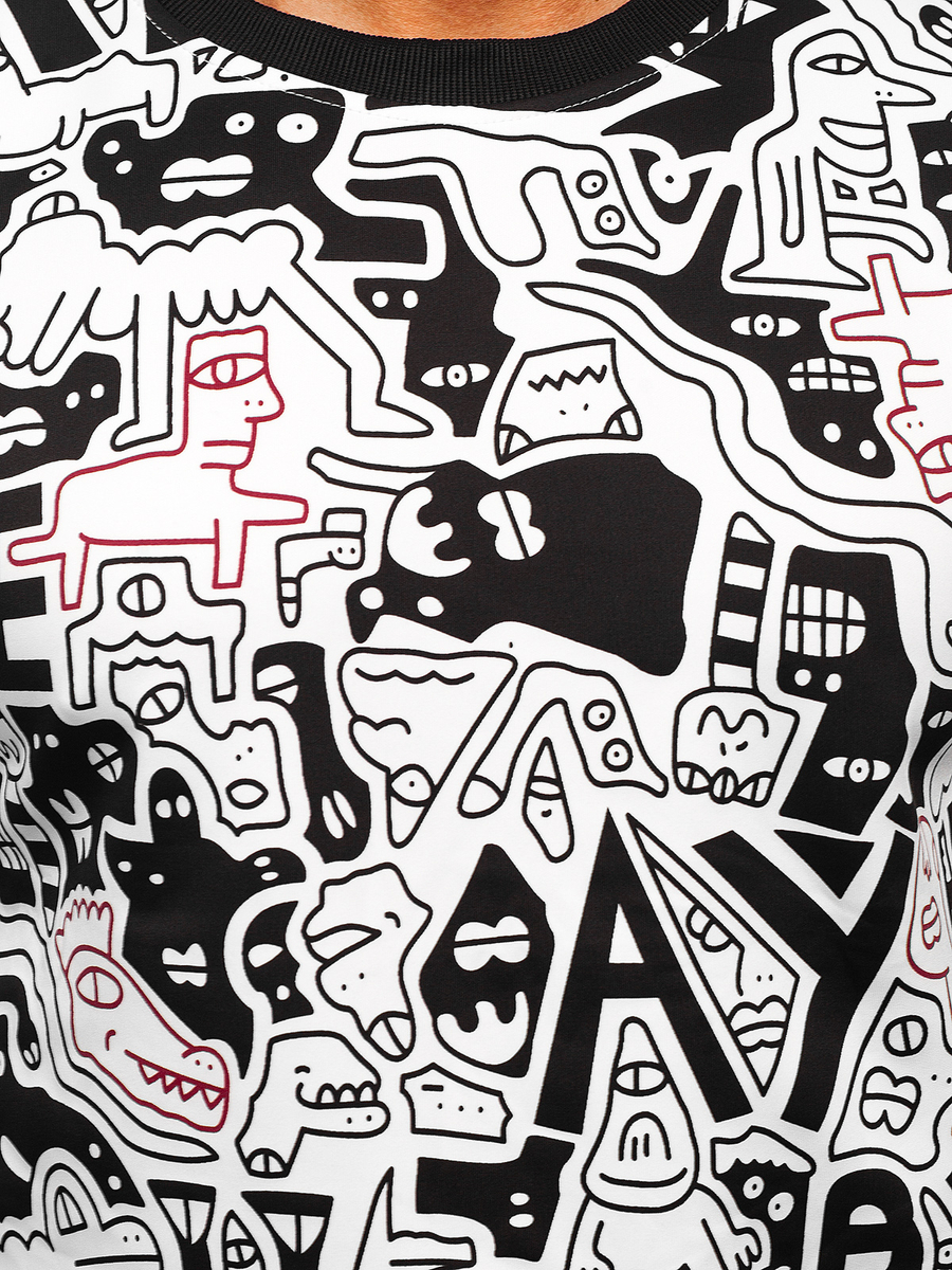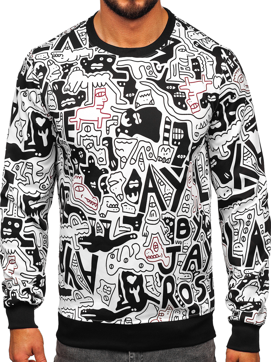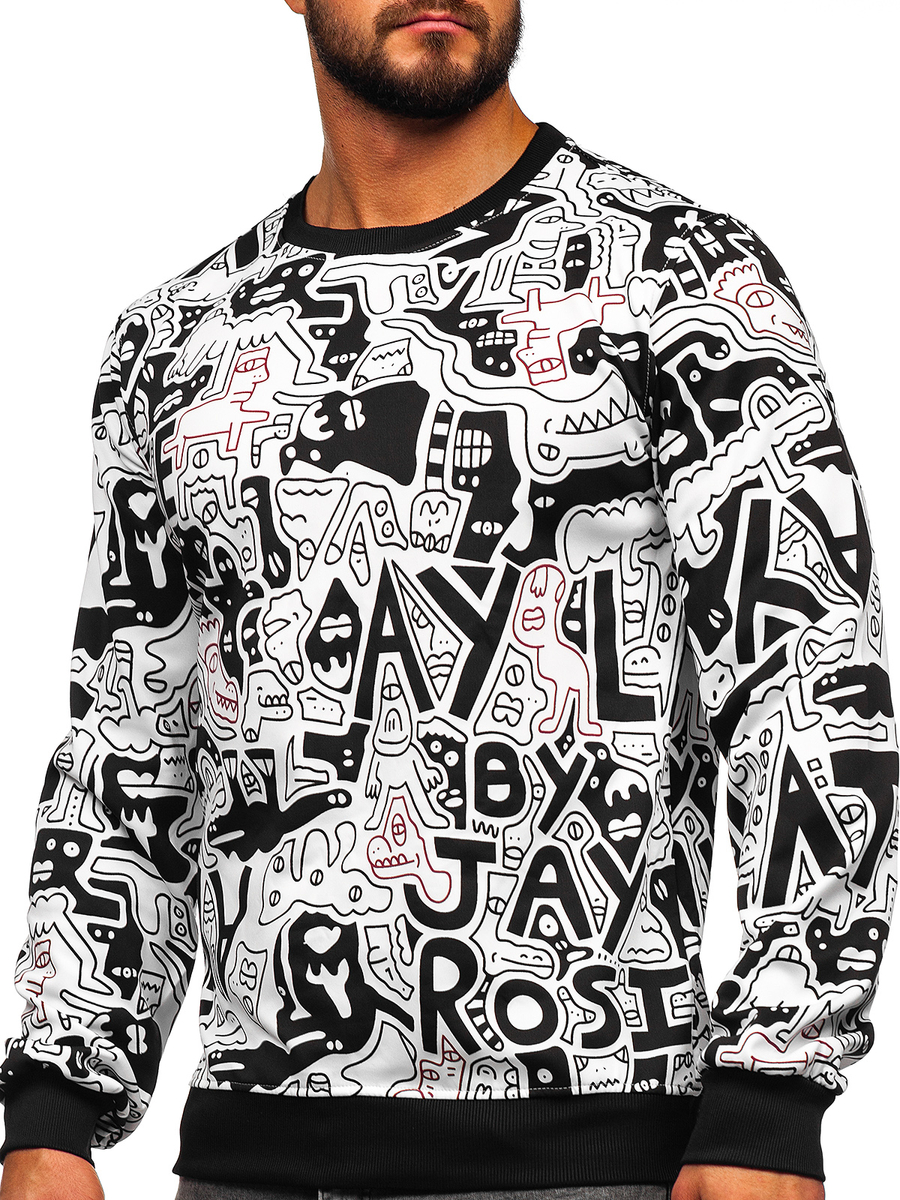 Η μαύρη και λευκή ανδρική μπλούζα χωρίς κουκούλα με στάμπα Bolf 8B1133 είναι μια πρόταση για όσους δεν φοβούνται να πειραματιστούν με τη μόδα. Ο λαιμός, τα μανίκια και το κάτω μέρος της μπλούζας είναι τελειωμένα με μαύρο λάστιχο. Είναι κατασκευασμένη από 100% πολυεστέρα. Αυτή η έντονη μπλούζα θα συνδυάζεται εξαιρετικά με παντελόνια slim fit, τζιν και σε πιο αθλητικό στυλ με joggers ή παντελόνια φόρμας.